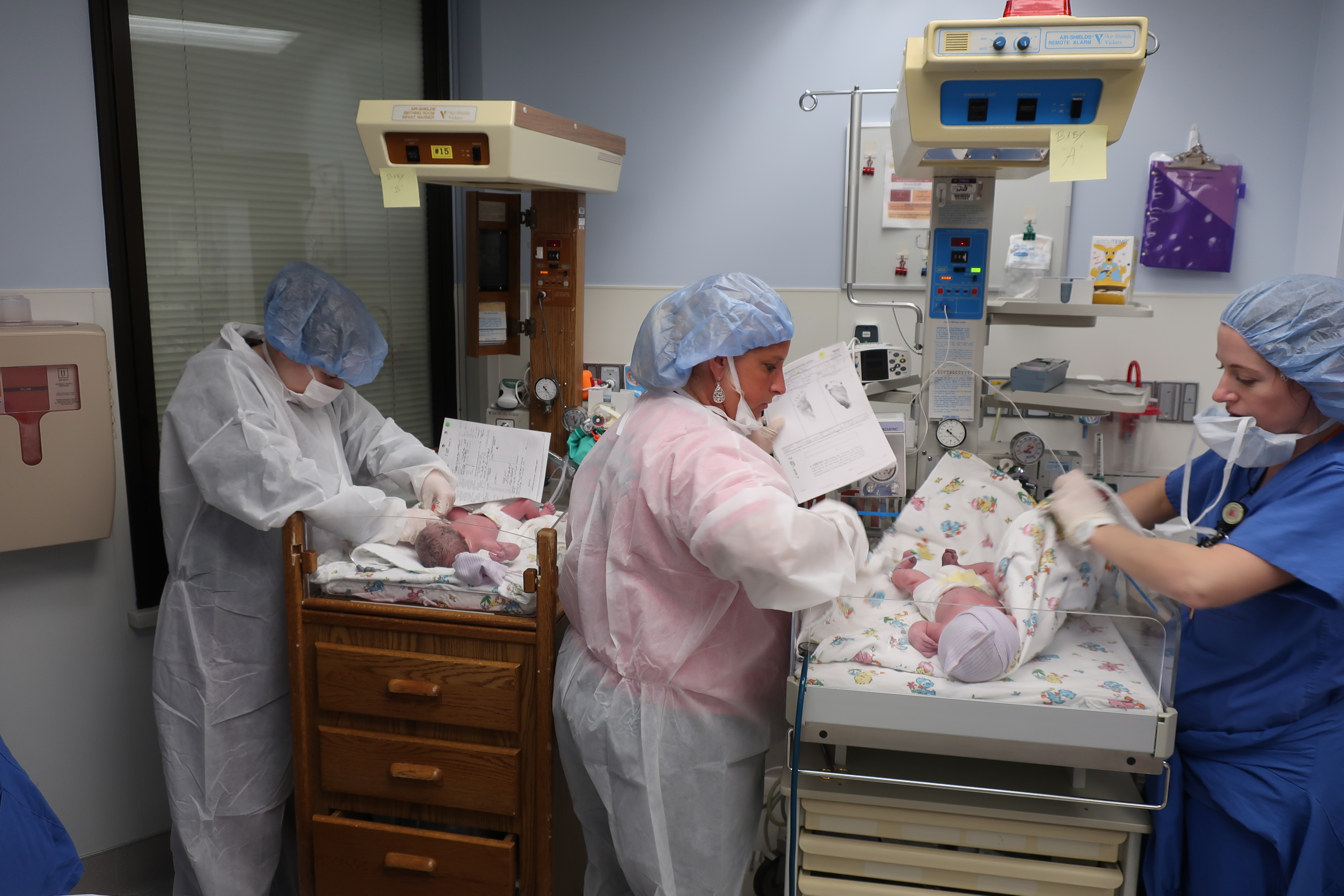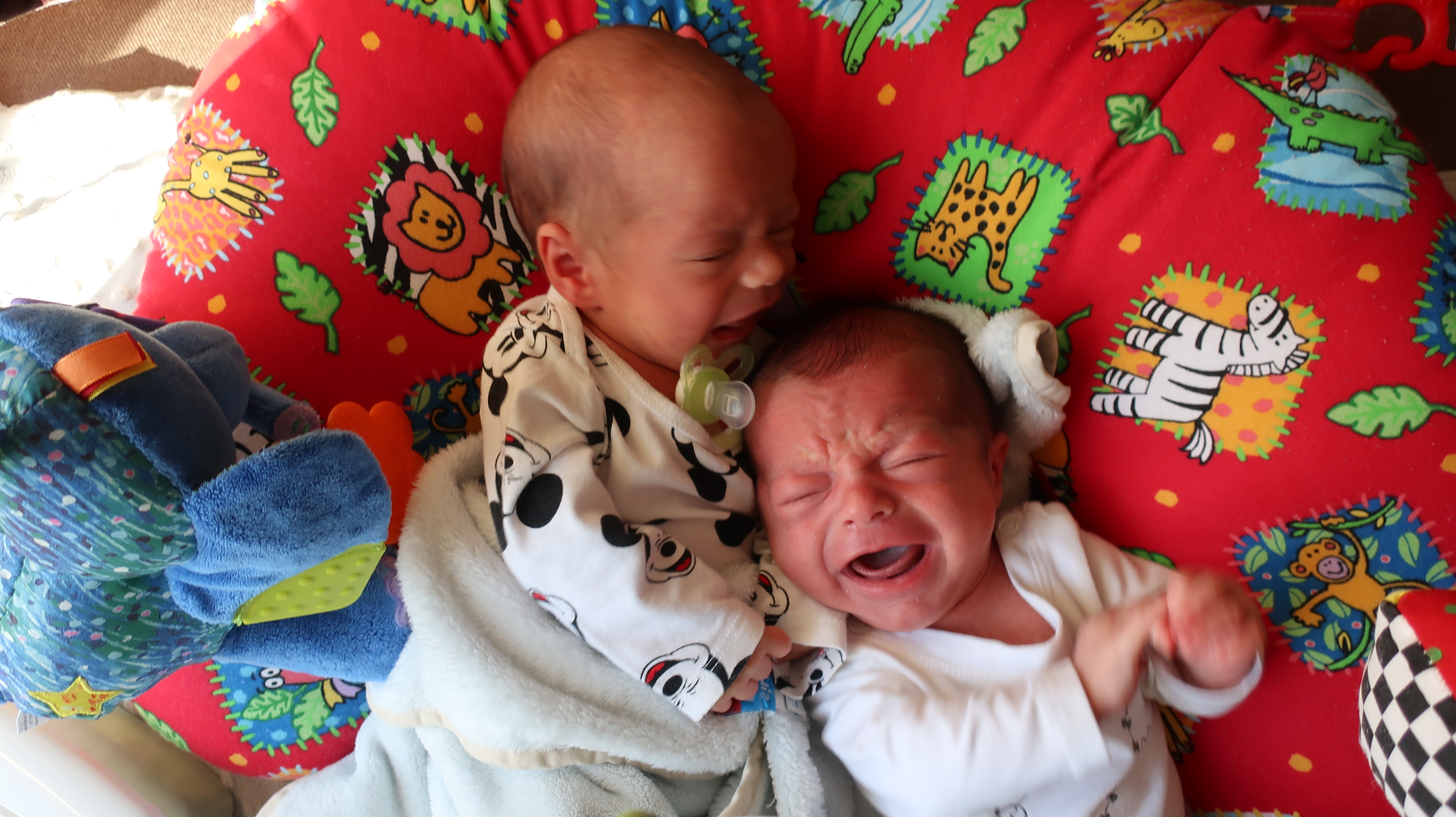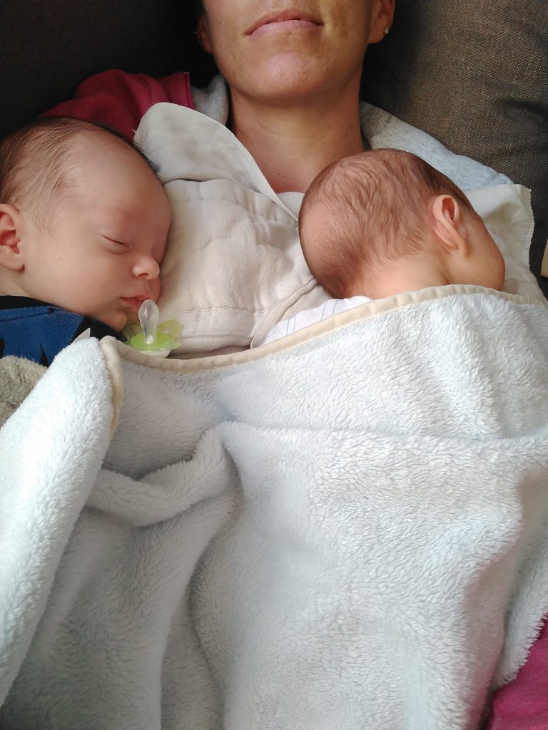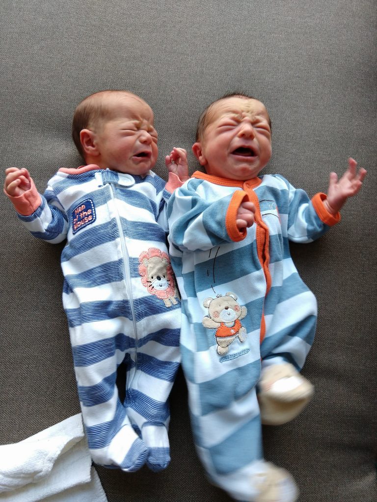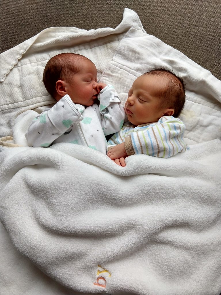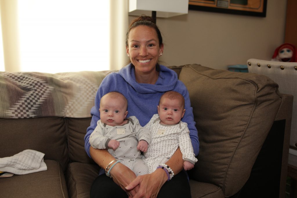 They both have their bottom front 2 teeth and got those about a month ago. And they instantly started biting me with them while nursing, so that’s super fun. Fortunately I only nurse them once overnight and sometimes once around wake-up time now with bottles of pumped milk and formula throughout the day, but that still hurts when it happens!