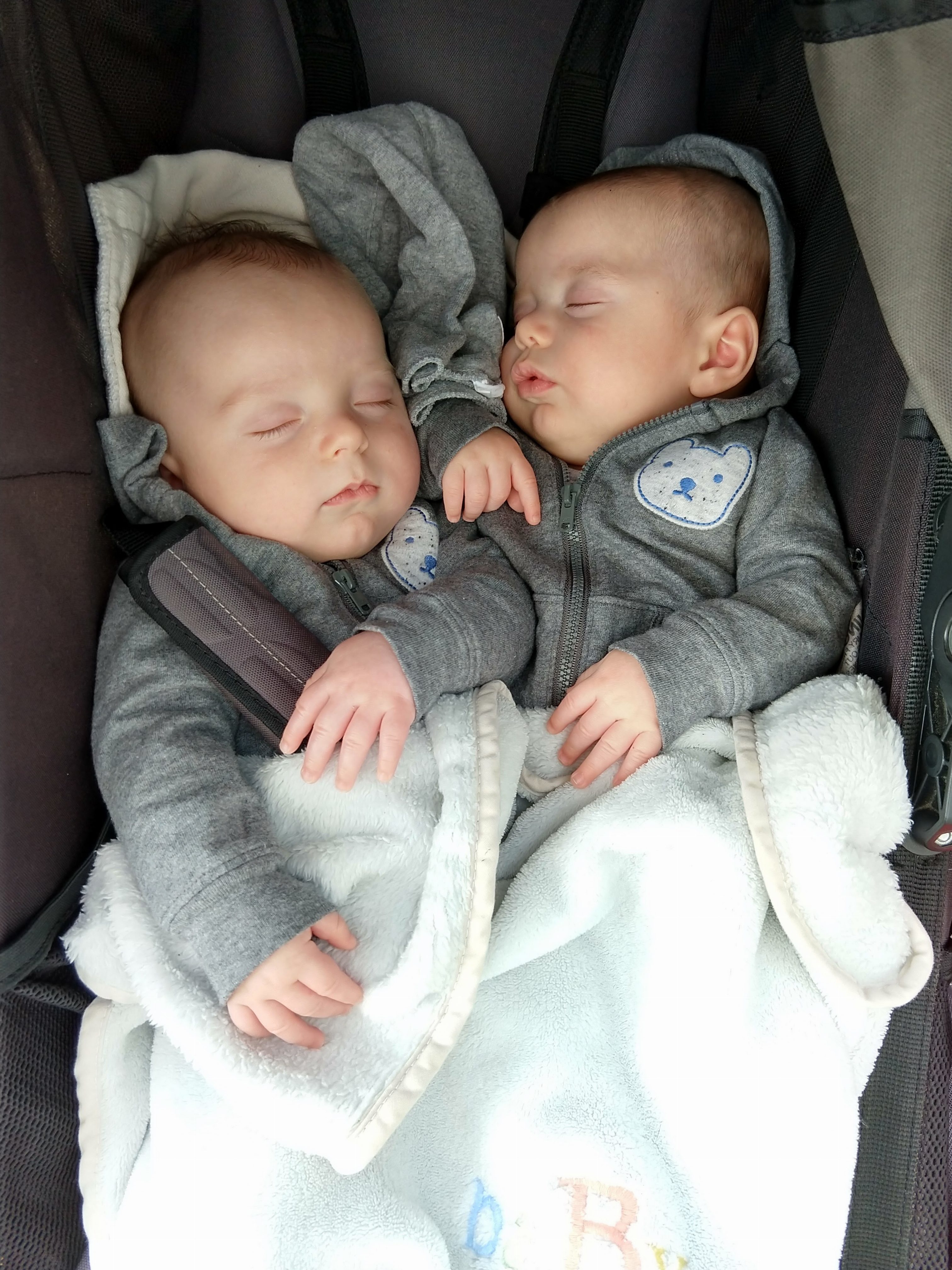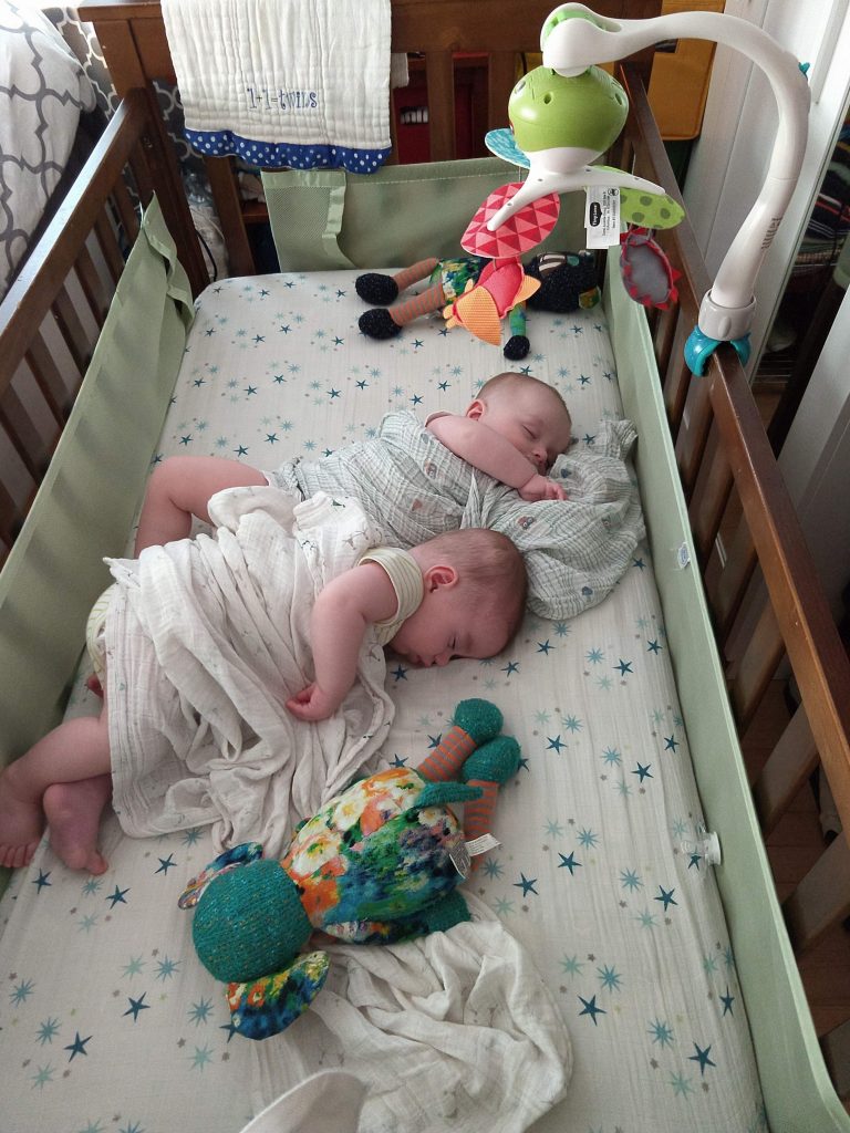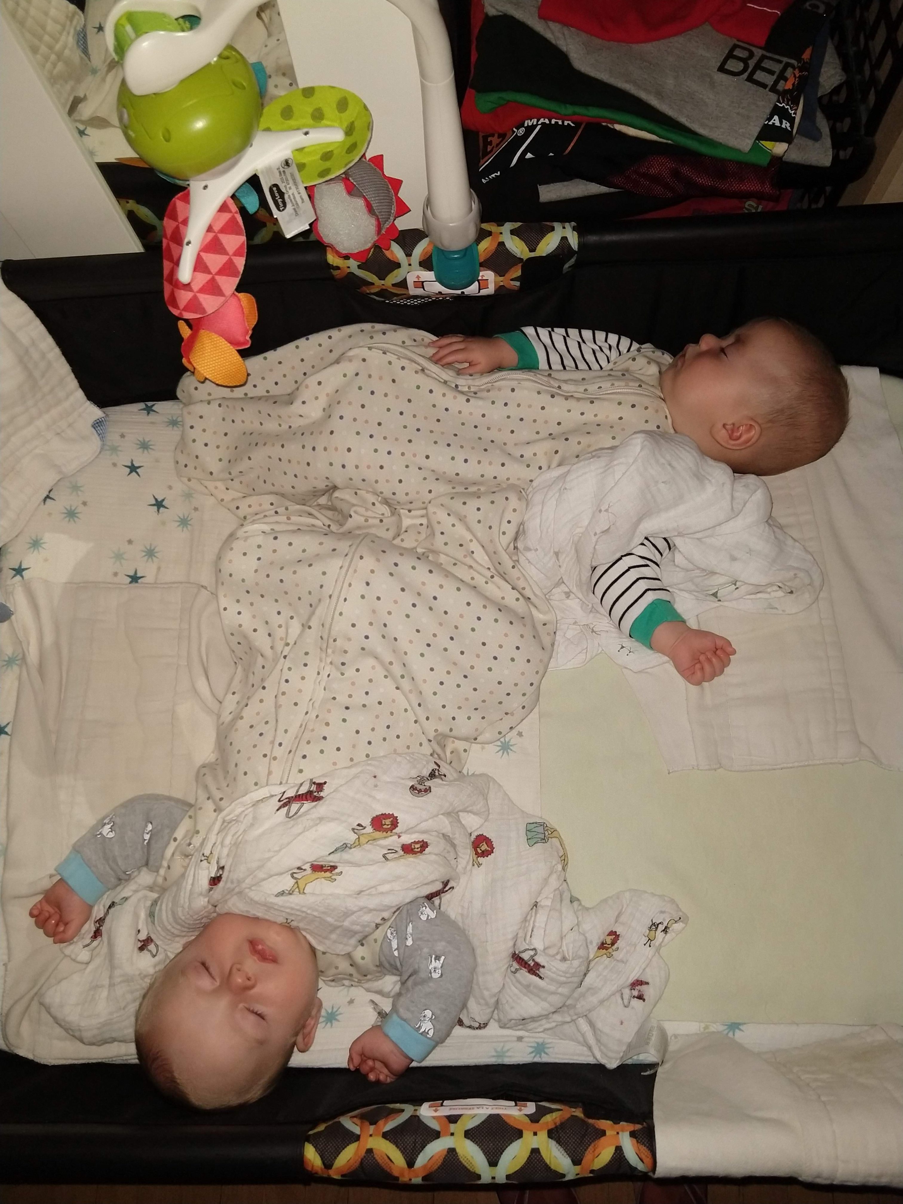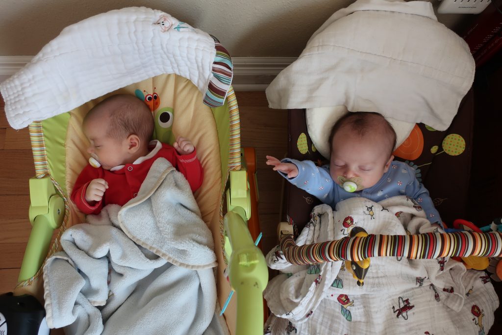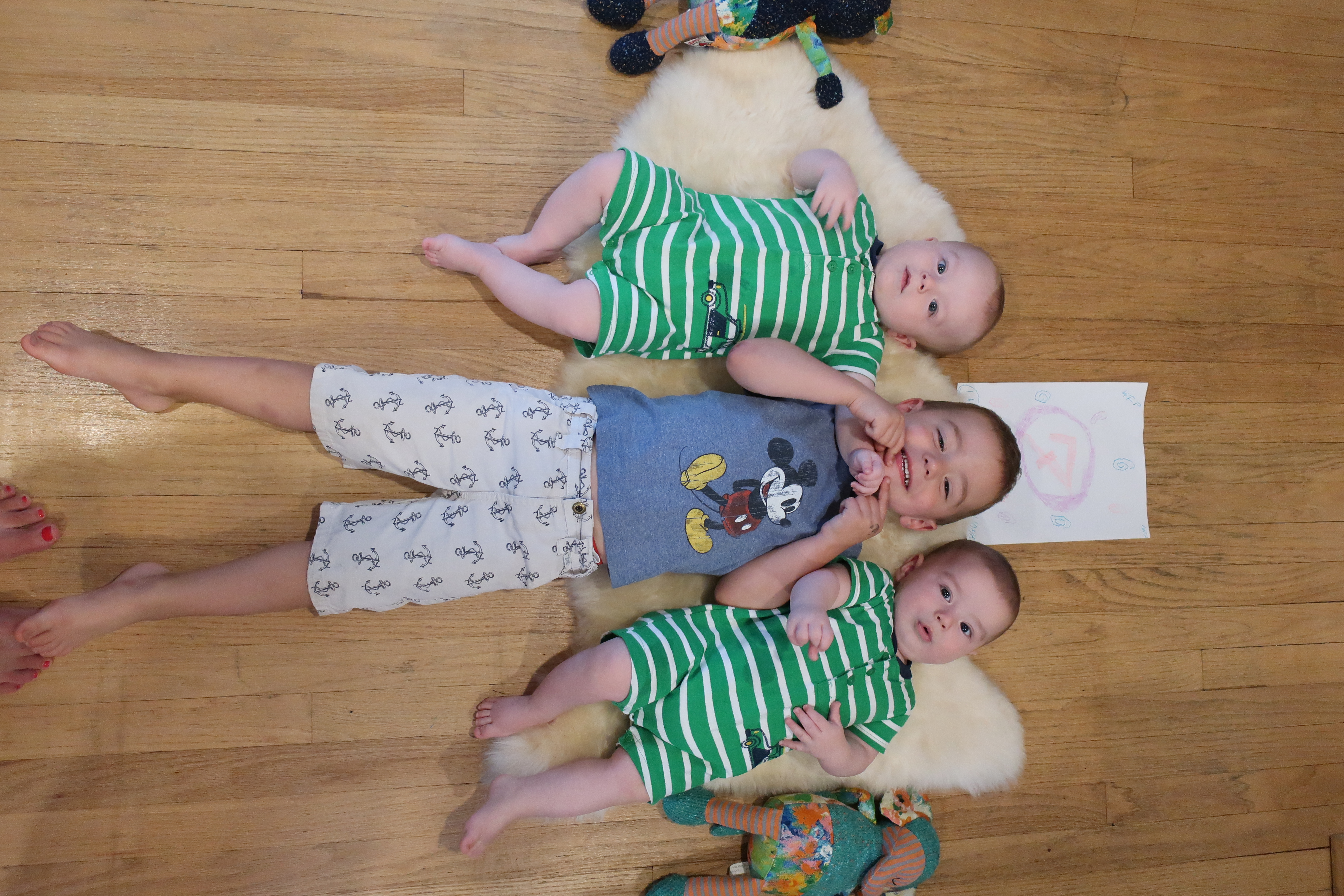 Like I said earlier, naps aren’t always the most consistent. Nat can usually be counted on to take 2 solid naps a day if we’re not walking to/from school (I’ve stopped putting him down for that last early evening nap and just stretching things out until bedtime instead), and Avit is happy to take normally just a longer afternoon one. For the past couple days, though, the stars have aligned and I actually have gotten all 3 boys to nap at the same time after lunch for a couple hours, and I haven’t even been giving the twins their solid food. They’ve had colds the past couple days and are all stuffy, so I’m not forcing them to try to swallow mushy food along with all their snot. If they could do that regularly, I’d be happy for them to drop morning and early evening naps all together.