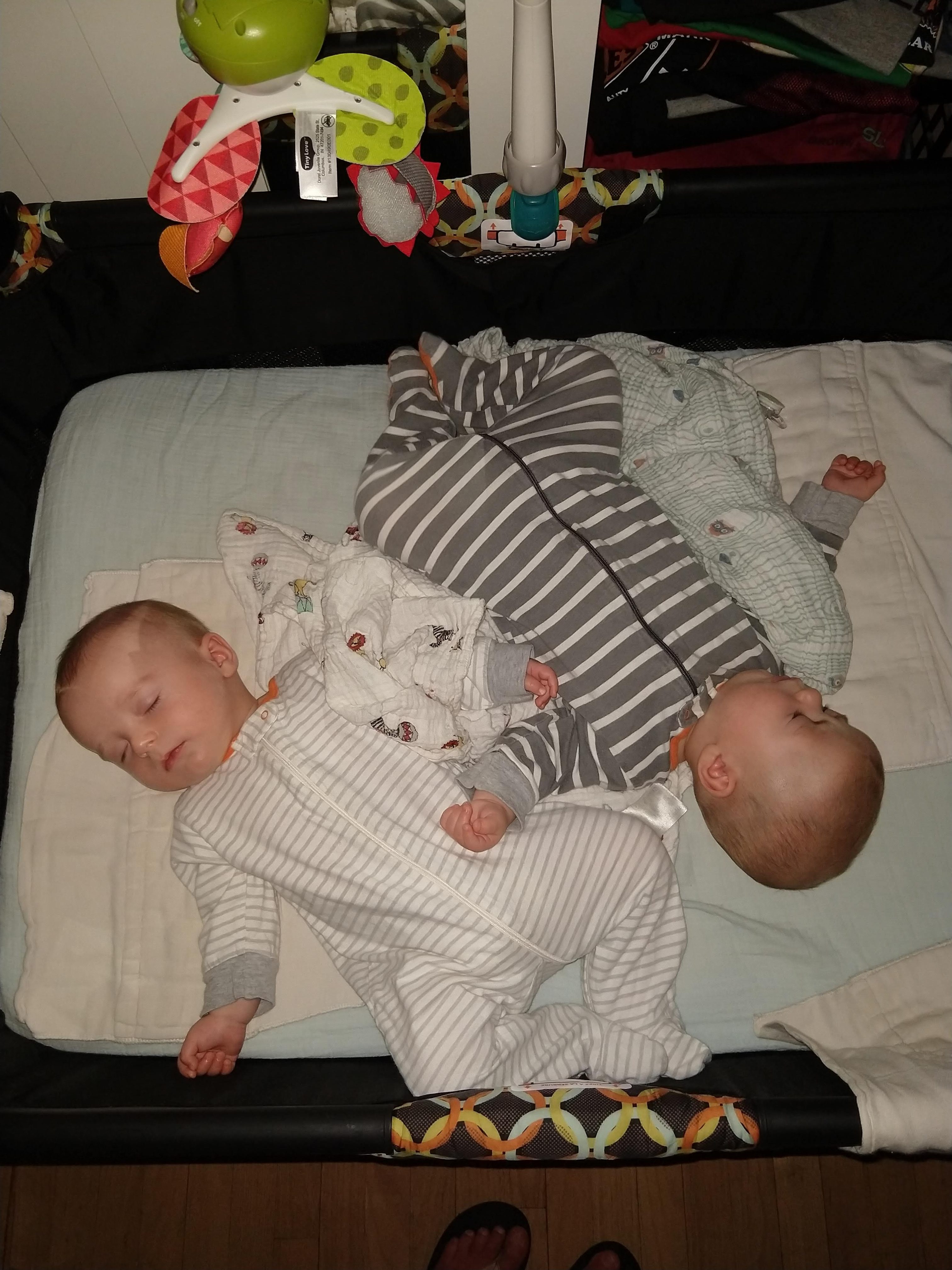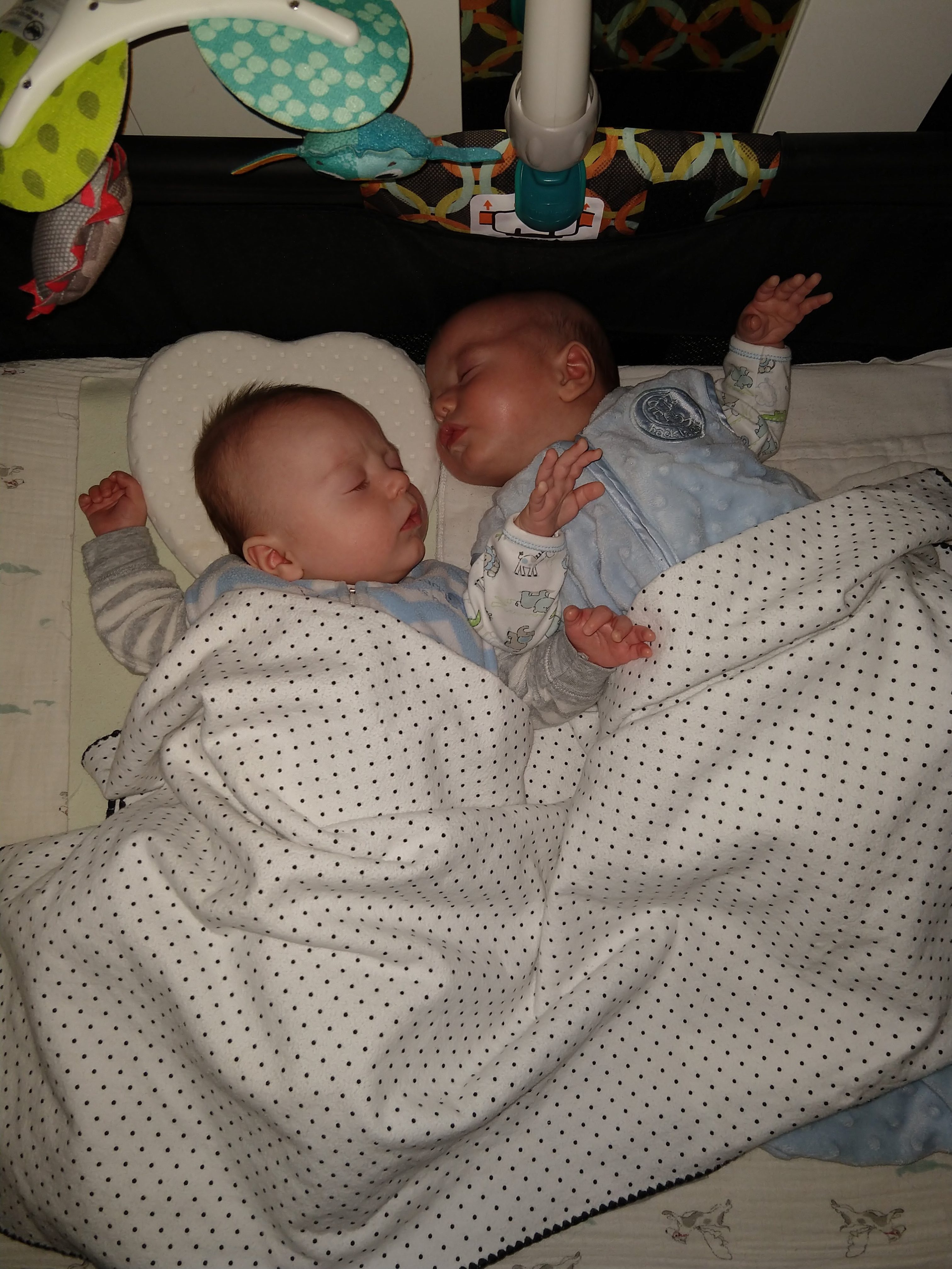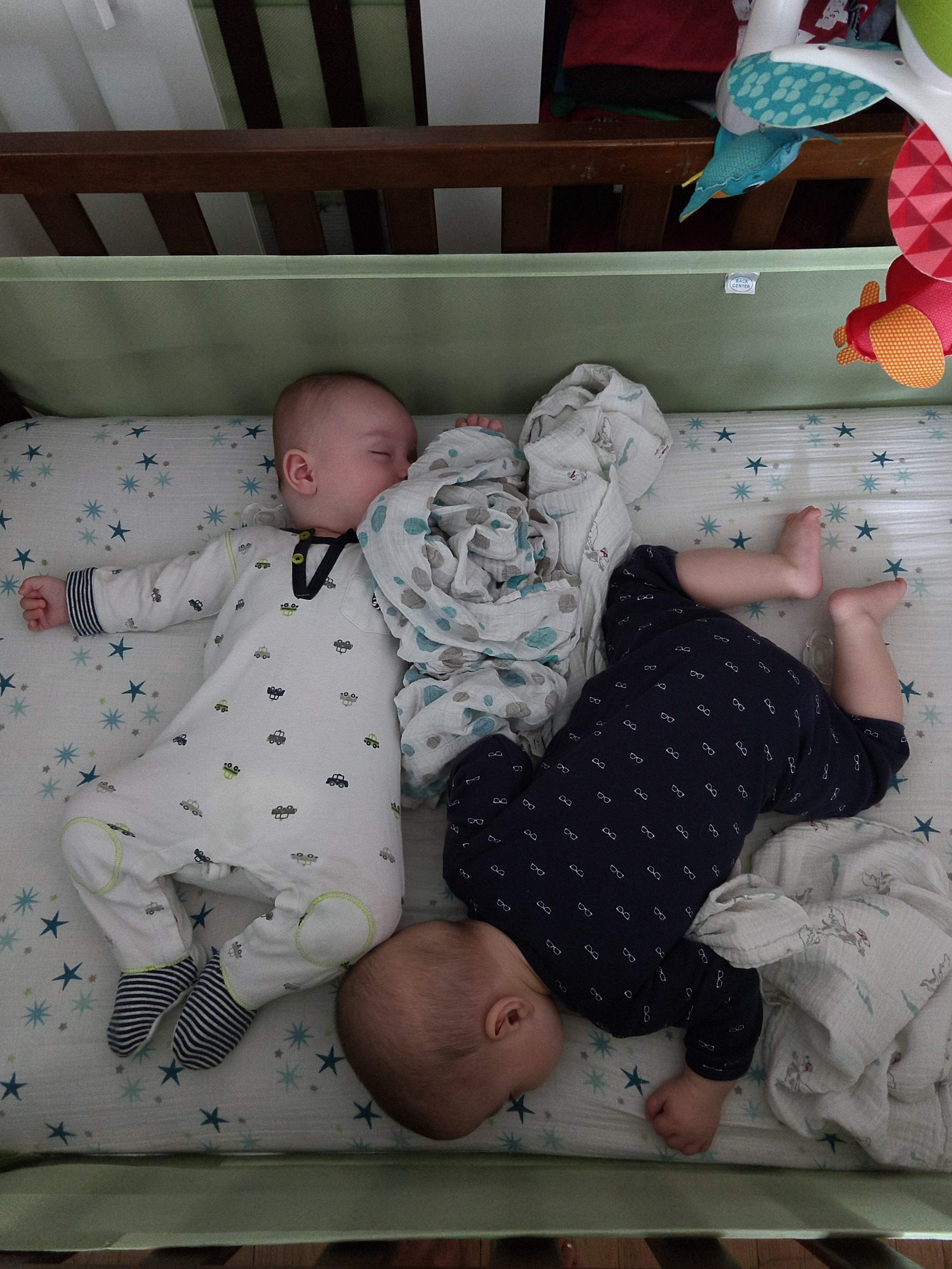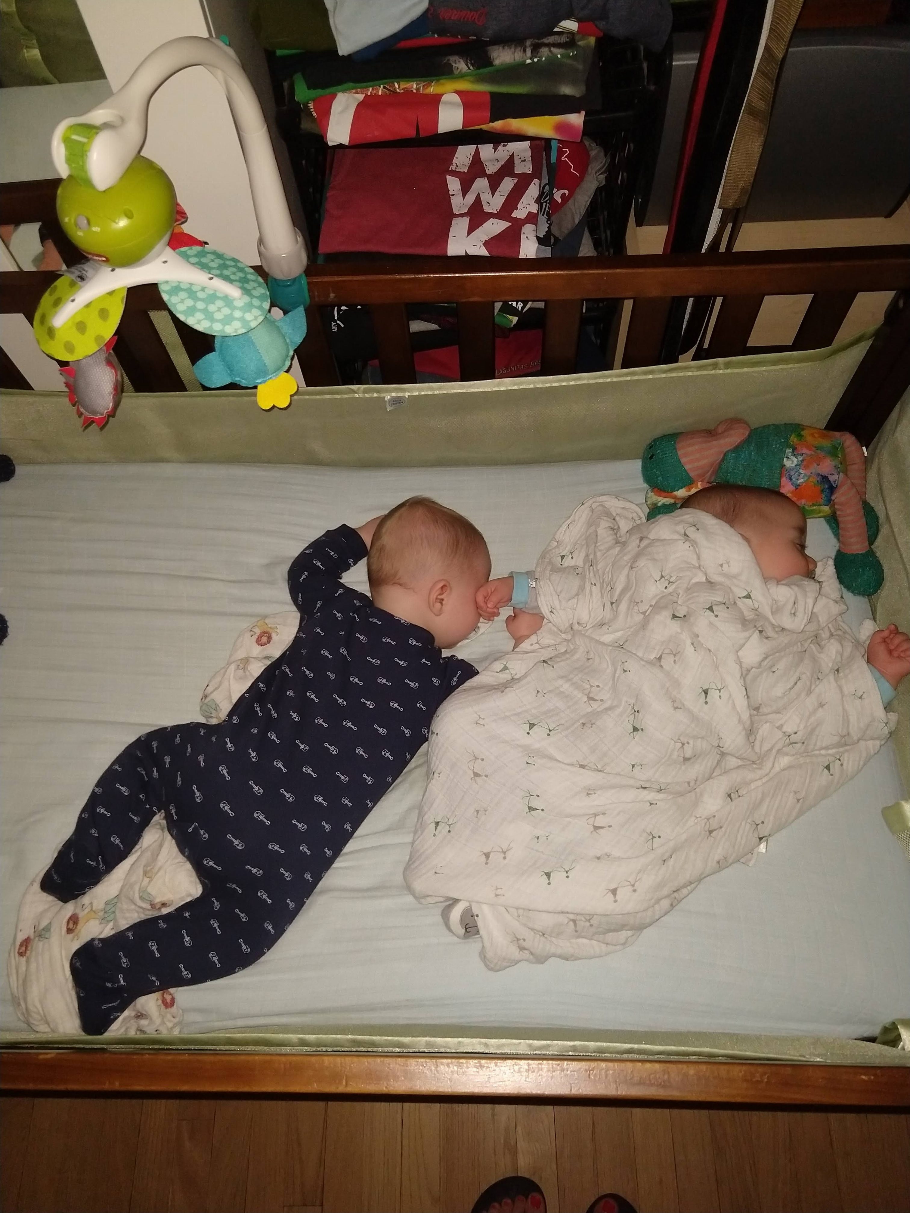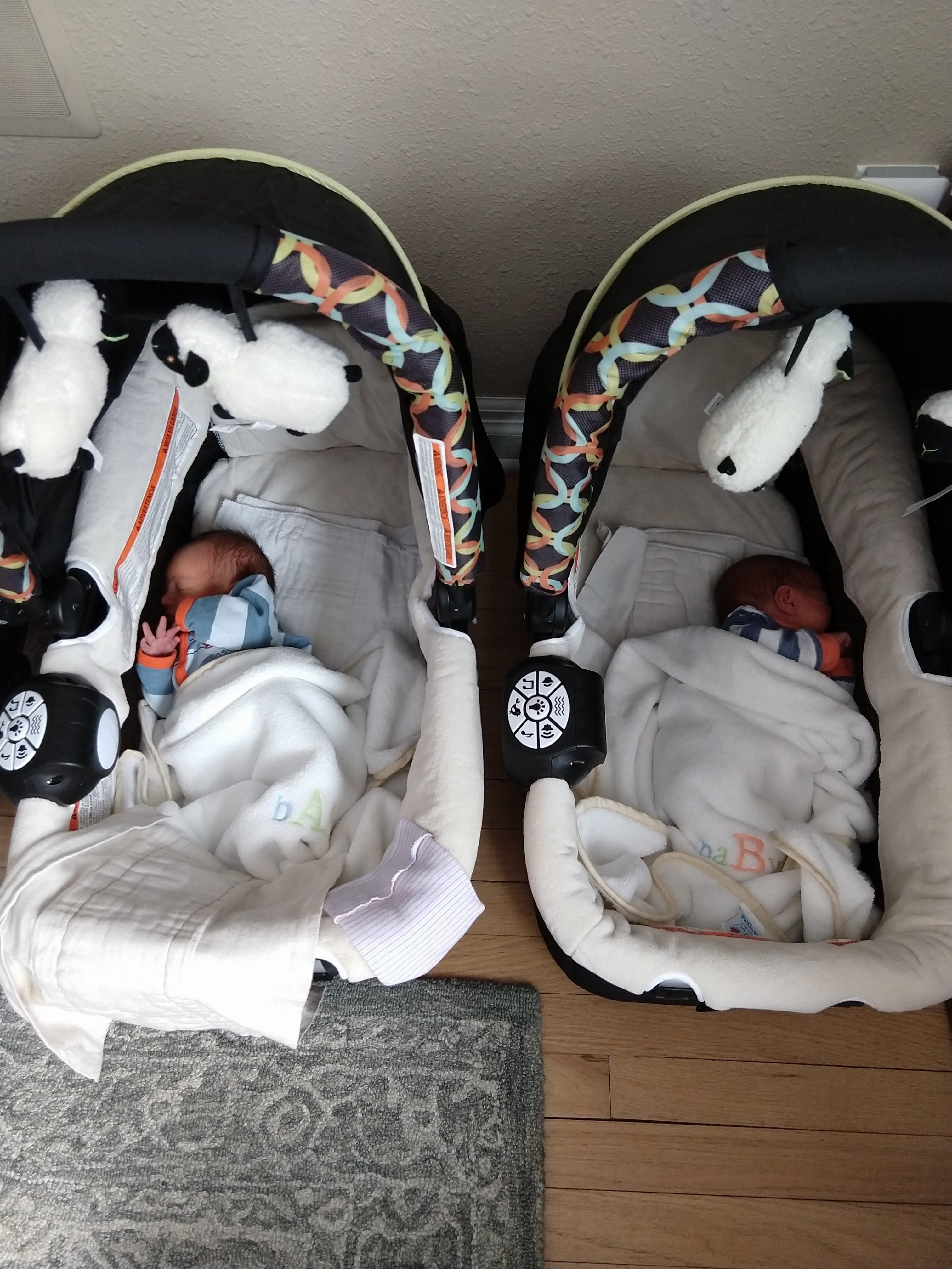 Like I said earlier, naps aren’t always the most consistent. Nat can usually be counted on to take 2 solid naps a day if we’re not walking to/from school (I’ve stopped putting him down for that last early evening nap and just stretching things out until bedtime instead), and Avit is happy to take normally just a longer afternoon one. For the past couple days, though, the stars have aligned and I actually have gotten all 3 boys to nap at the same time after lunch for a couple hours, and I haven’t even been giving the twins their solid food. They’ve had colds the past couple days and are all stuffy, so I’m not forcing them to try to swallow mushy food along with all their snot. If they could do that regularly, I’d be happy for them to drop morning and early evening naps all together.