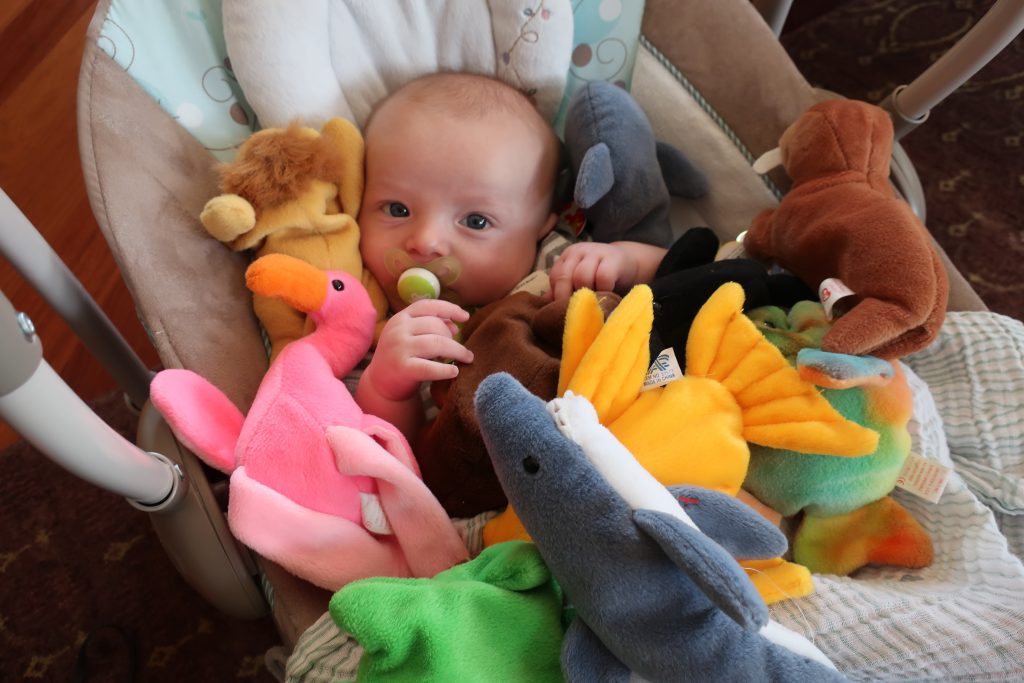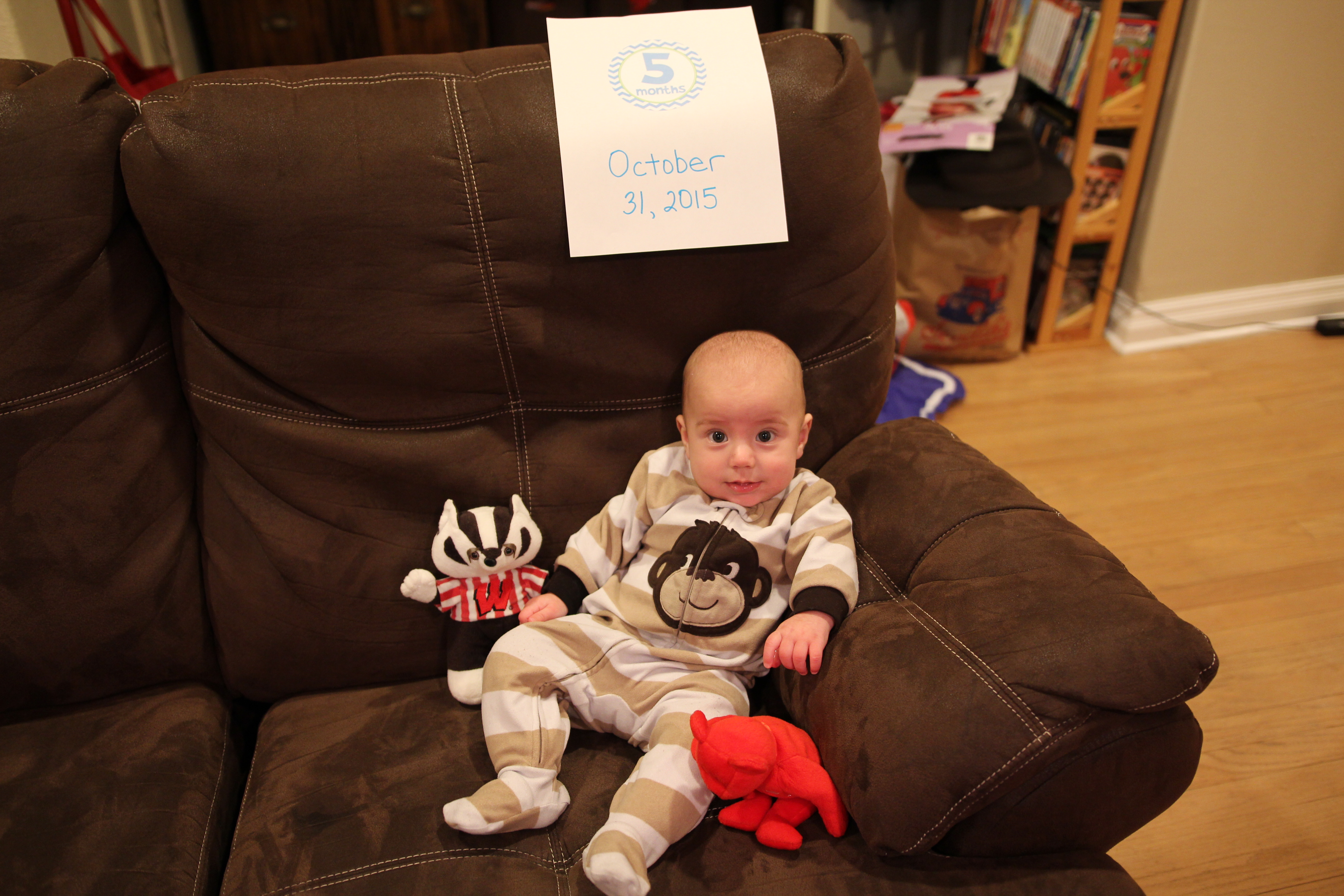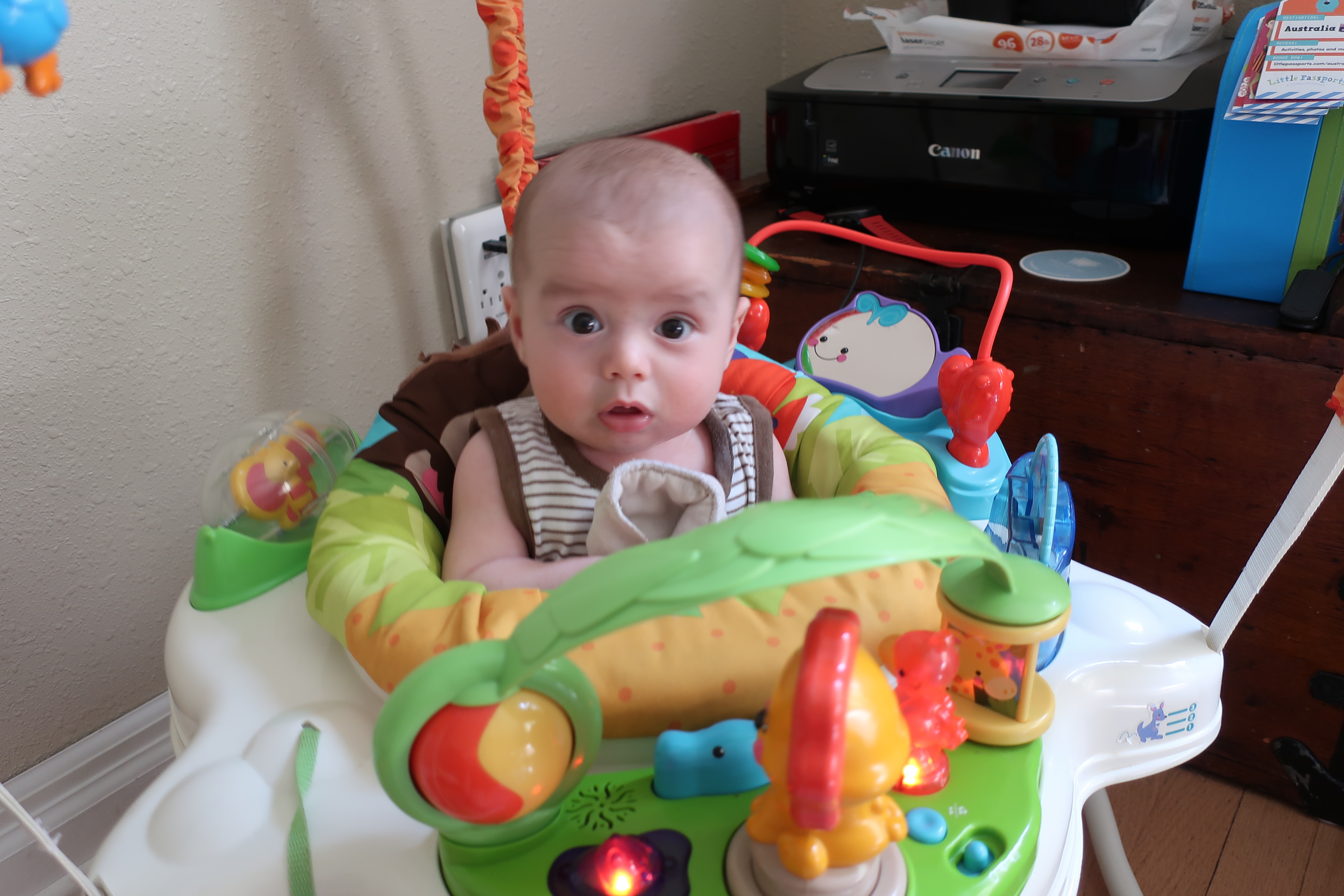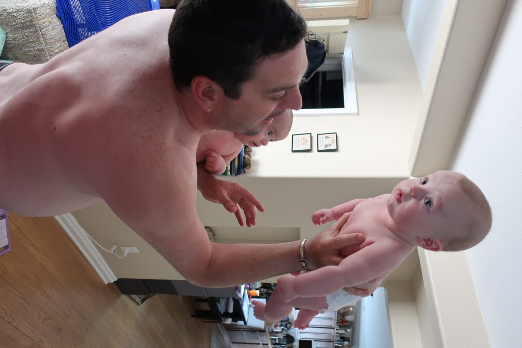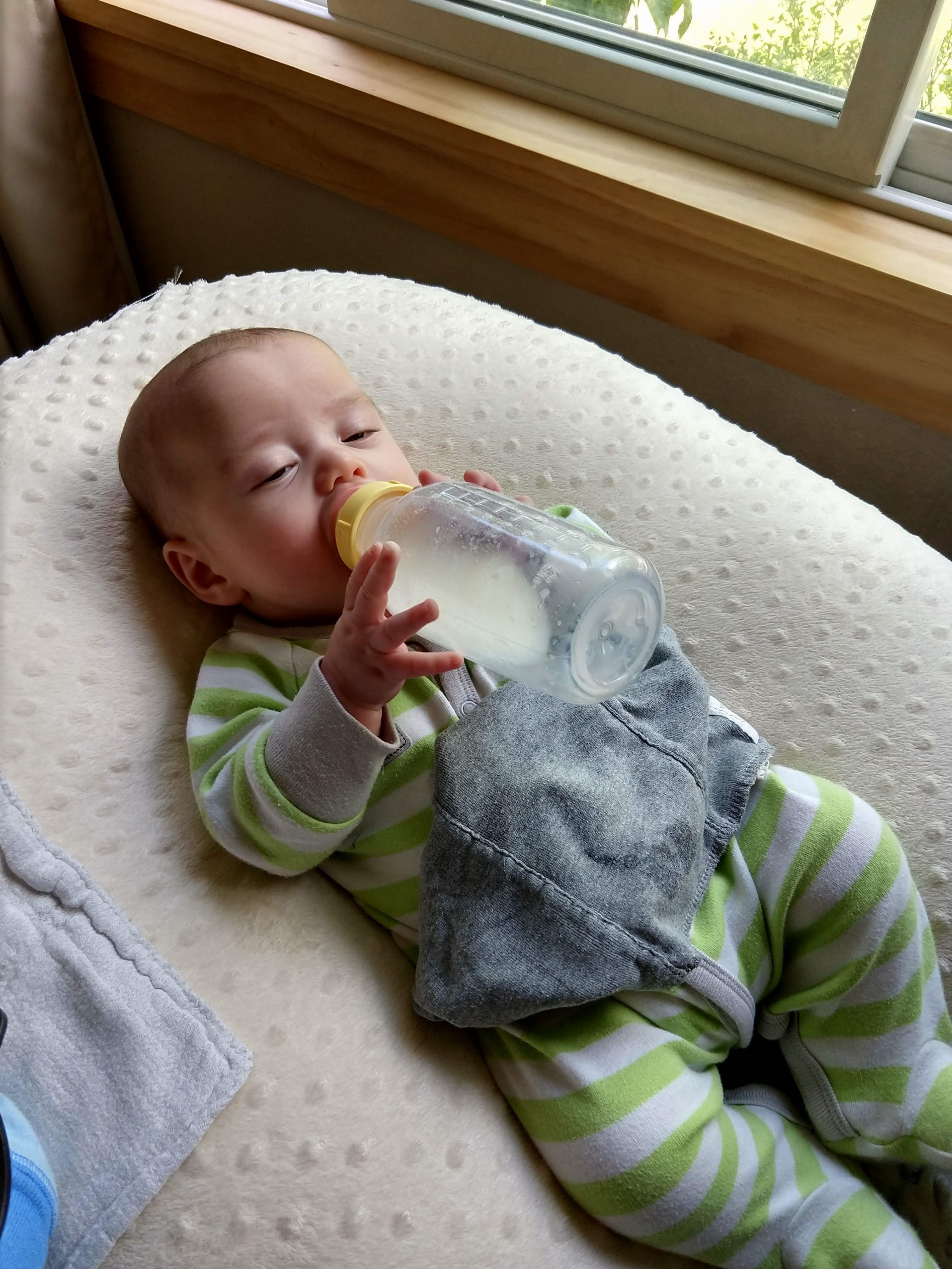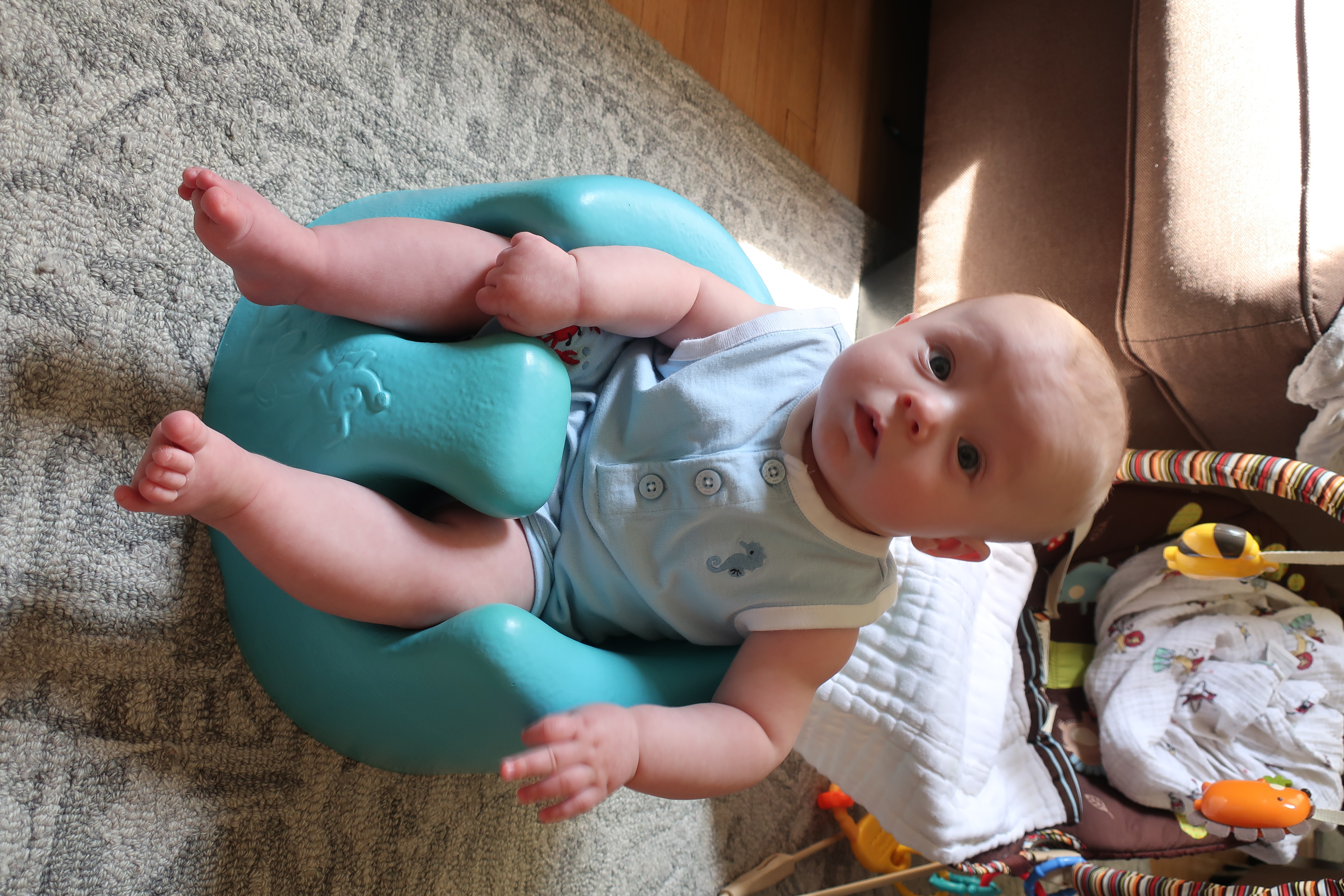Speaking of bottles, they’re still on the same bottle schedule that they’ve been on for months – 4 bottles per day (roughly 9:00 a.m., noon, 3:00 p.m., and 6:00 p.m.) that are each a mixture of mostly pumped milk and a little formula. Nat just recently caught up to Avit with having a 6 oz. bottle each time; he had been stuck at 4 oz. for the longest time while Avit chugged down 6 and basically as much as you would give him. Chunk.