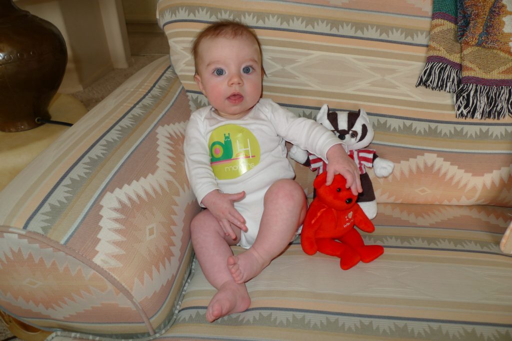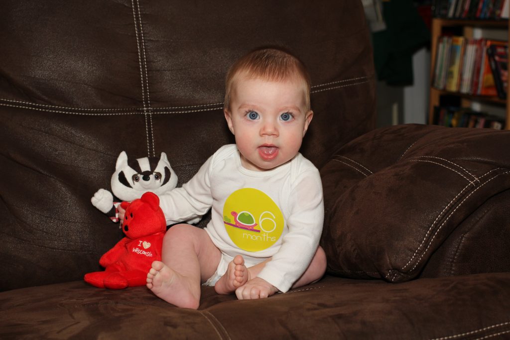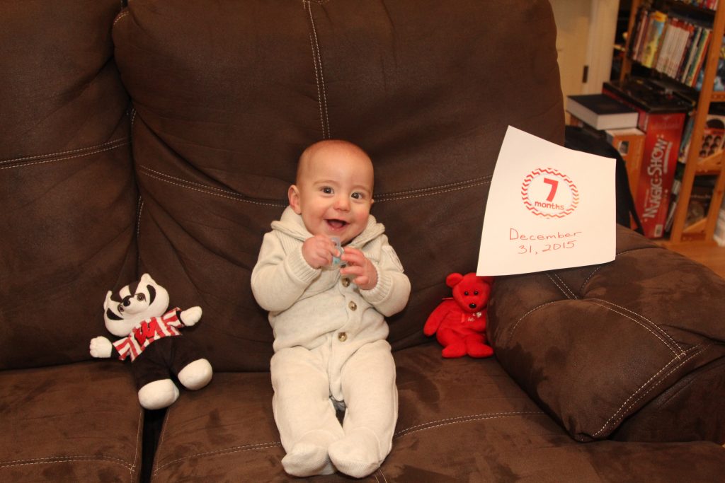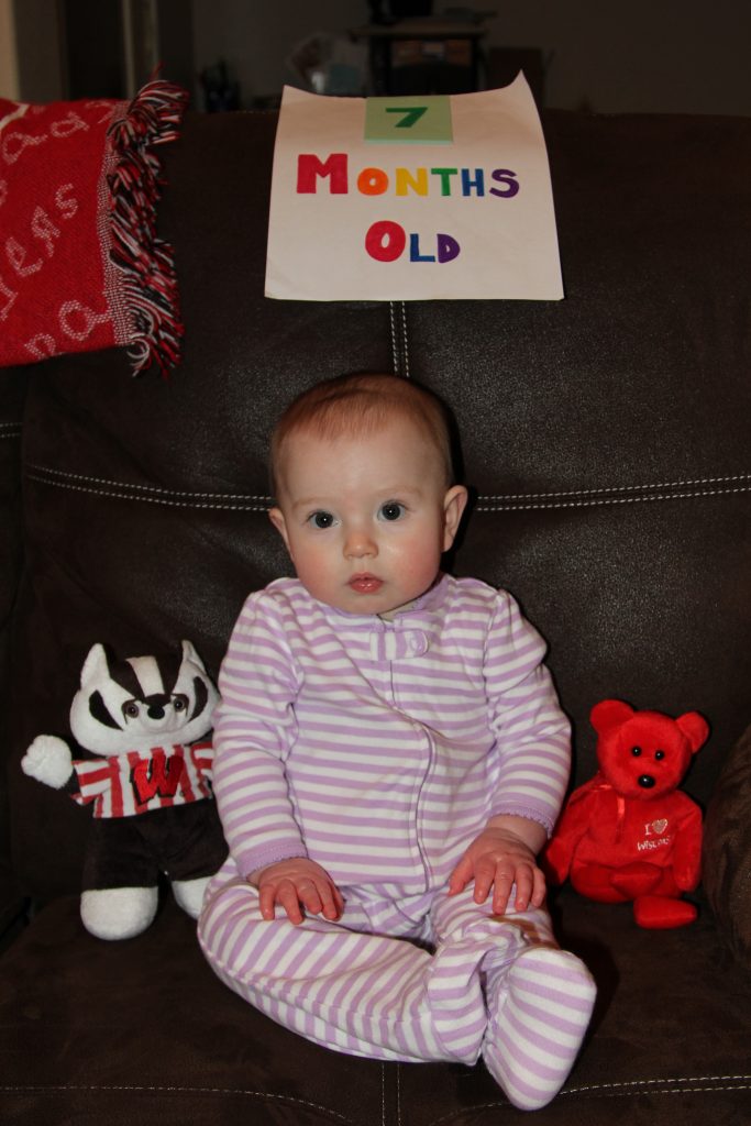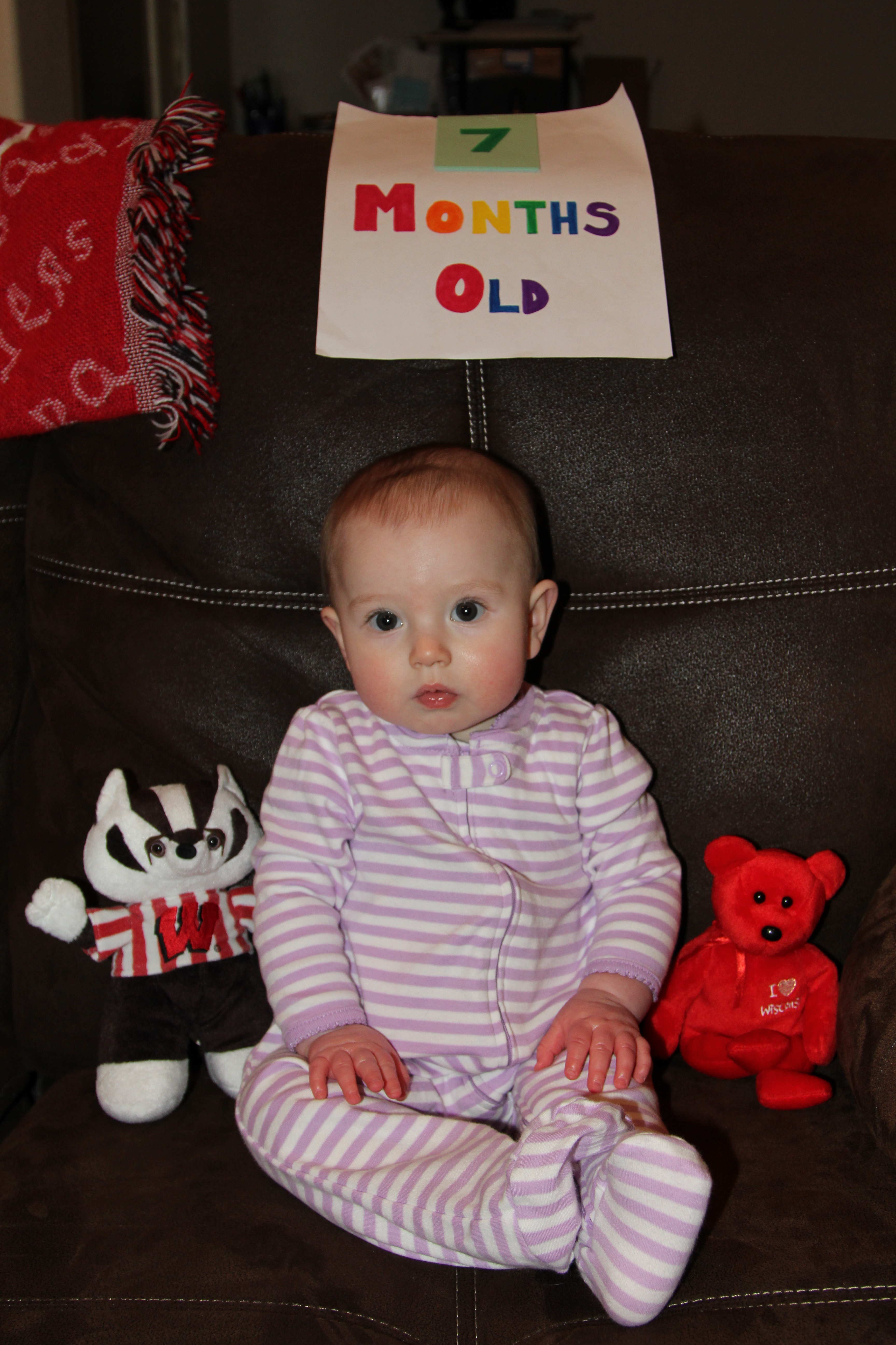 Now for the monthly comparisons. I don’t think I had started writing here when Della was 6 months old, but I’ll give you Lana’s and Morrison’s 6 and 7 month posts: