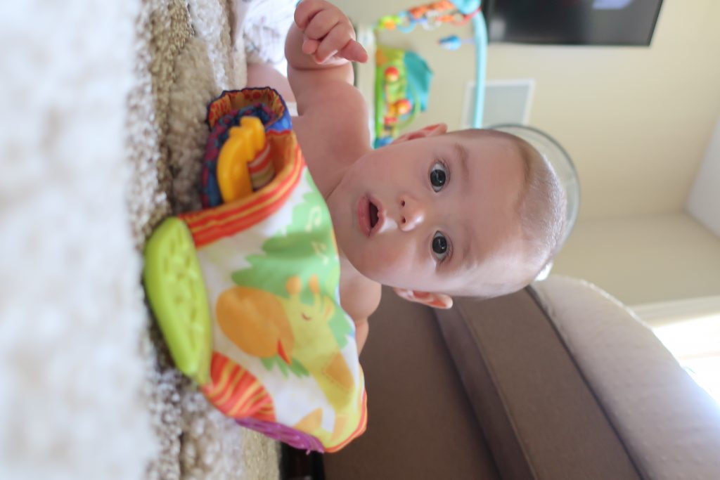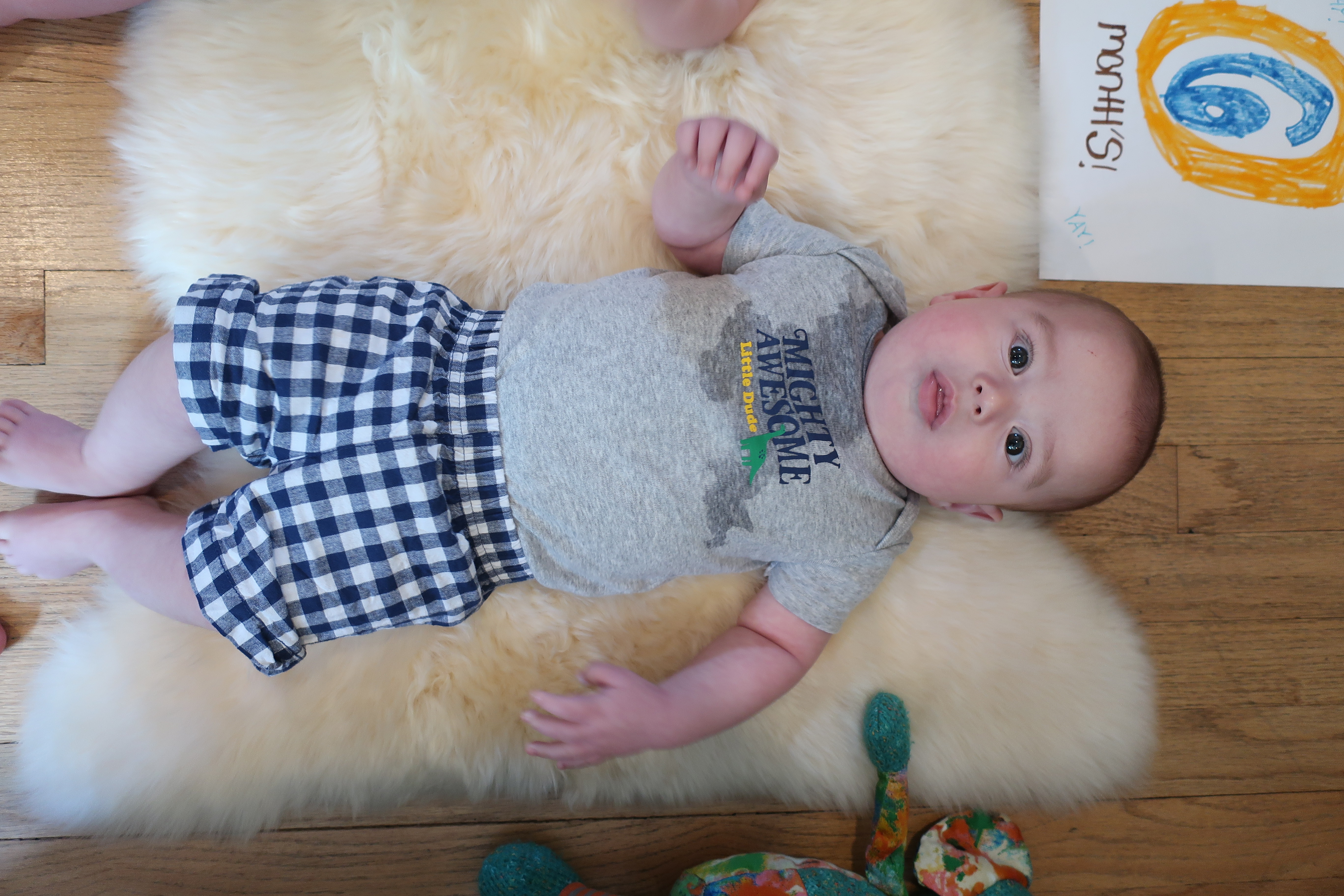 They both still love the jumperoos, being held and played with (obviously), their show on Netflix called Little Baby Bum (i don’t know what it is, but this show has total baby mind control. they can both be screaming crabby, and i’ll put them on the living room floor and turn that show on and they instantly quiet), pacifiers and snuggling into their muslin blankets to sleep, being in the stroller and car, reaching for and grabbing toys now, and watching and interacting with all of us. The big 3 love playing with these little guys, too. I just switched out all their 6 month clothes and brought up everything 6-9, 6-12, and 9 month sizes, and I swear those are all going to be too small soon as well. They’re in size 3 daytime diapers and I just bought the first pack of size 4 overnights. I’m hoping that trying overnight diapers now will help get them through the nights better, too. Yeah, we’ll see.
