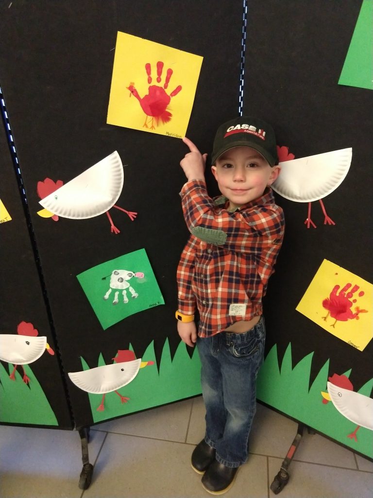 Tonight was your first school concert, and it was fantastic! K4 was suggested to dress as farmers, because you were performing songs from Click, Clack, Moo. It was so cute! You wore a plaid shirt with corduroy elbow patches, jeans, little boots, and a Case IH hat. You were given a tambourine for your instrument, and you absolutely loved playing it. Great job, my love! I was so proud and had so much fun watching you.