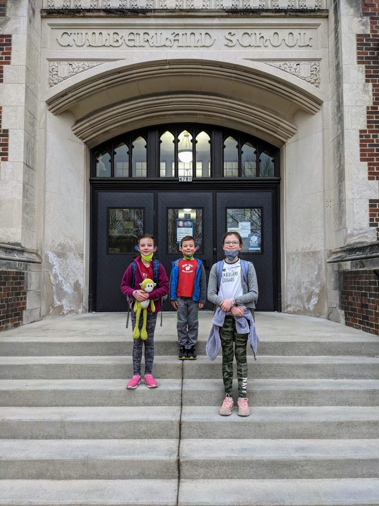 It’s back to school day, my love! You and your sisters all headed back to in-person school this morning at Cumberland, and you were all so excited, even with your huge, heavy backpacks 😉 . You get to stay with Ms. Ruetz, and we could not have been happier to get that news!! She’s teaching you guys who are in her classroom again plus the friends who are staying virtual, so that will be perfect. She sent us a picture today from your indoor recess and said you are doing GREAT! I am so, so happy you guys not only get to be back in the classrooms for this last quarter but that we get to keep your teacher. We both love her!! And today is the first time you get to eat lunch at school! You’ve obviously been full day all year, but you haven’t been in your classroom until now. Have so much fun, my little love bug. You are such an amazing student, and watching your heart swell with your teacher and friends and your brain get smarter by the second makes me so incredibly proud and happy beyond words. I love you so much!