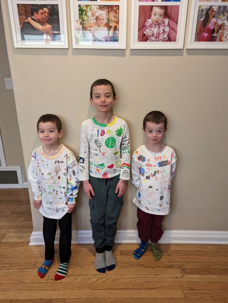 Today’s your 100th day of school, but unfortunately you couldn’t make it. We got all the way to school and everything, but when we all got out of the car and started walking to your line, you started feeling really bad again. You said your head hurt, you were kind of dizzy, and your tummy started feeling funny again, so I let you just go right back to the car and I took you home after I dropped Lana and the twins off. Fortunately you’re not throwing up anymore and keeping your food and water down, but I think you just haven’t built any energy back up yet. That bug really took it out of you, my love. You wore your 100th day shirt from K4 and everything, to match the twins today, so I made sure to take a picture to send to both Mrs. Koch and Ms. Makela. They loved it, and they both hope you’re feeling better soon!
