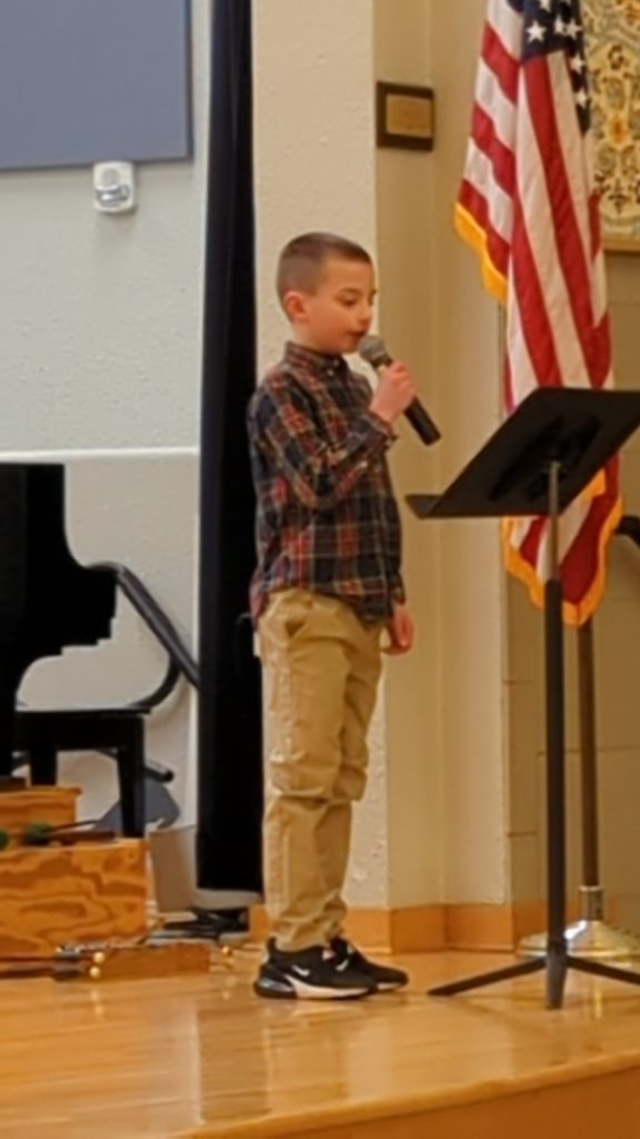 Tonight was your music concert at school, and you did such a great job! The theme was “Riddle Me This?” and you had a speaking part!! None of you has ever had a speaking part in a concert before, so that was awesome. Plus I didn’t have to bring your sisters or brothers, so I was able to sit and fully enjoy the entire thing without sushing someone even once. Heavenly! I was so proud of you, kiddo. You spoke your part clearly and slowly, and we could understand you perfectly. You are so cute!