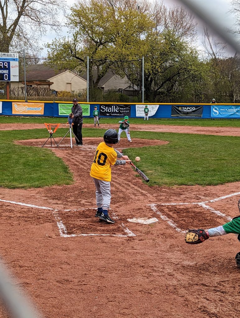 Today was your third game, and you got your first hit! Daddy took the twins to watch this time while I stayed home with your sisters and got my chores done, and you got on base – great job, kiddo! Your thumb is doing a lot better, and you can go without bandaging and wrapping it up all day and night now. Daddy did wrap it again for the game, and Mr. Hand got you a pair of batting gloves last week for better protection, too, so you were all set. I got you a pair of cleats this week so you got to test those out today as well, and I could tell you were so proud. You got to play catcher for the first time today, too, and Daddy said you were great at it!! You are an excellent catcher and thrower, just need to get more comfortable batting. Unfortunately you guys haven’t won yet and are 0-3, but I KNOW you won’t have a winless season. I’m just glad you’re having fun with it!