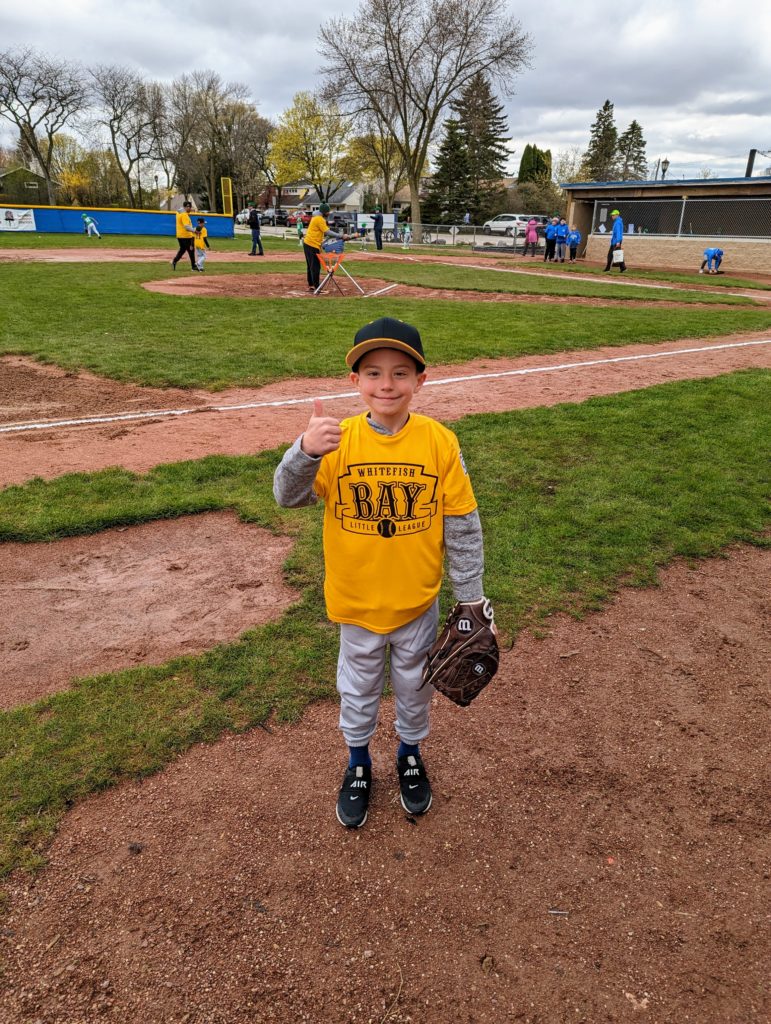 You have your first Little League evaluations this afternoon, and you are so excited. Daddy’s been helping you learn how to hold your glove and swing a bat, and I can tell he’s kind of excited, too. Good luck, my love, you’re going to be great!