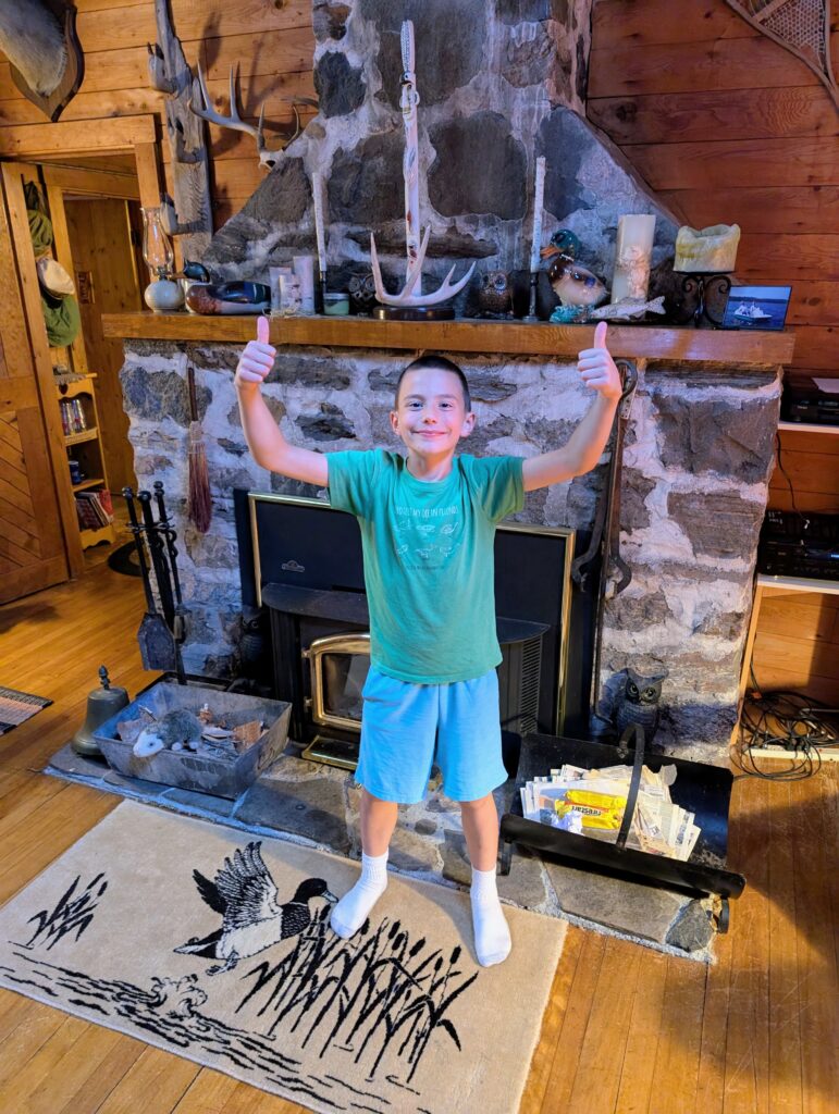 Today was a big day! We drove to Canada with Grandma so unfortunately you missed the championship game for your baseball season, but we were able to follow along with the game on Game Changer and you guys won!! So Coach will bring your trophy over next week. Also, you pulled your tooth out in the car on the way up so the Tooth Fairy will leave you a tooney just like for Lana. Nice job all around!