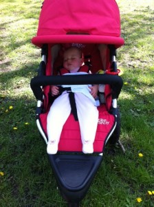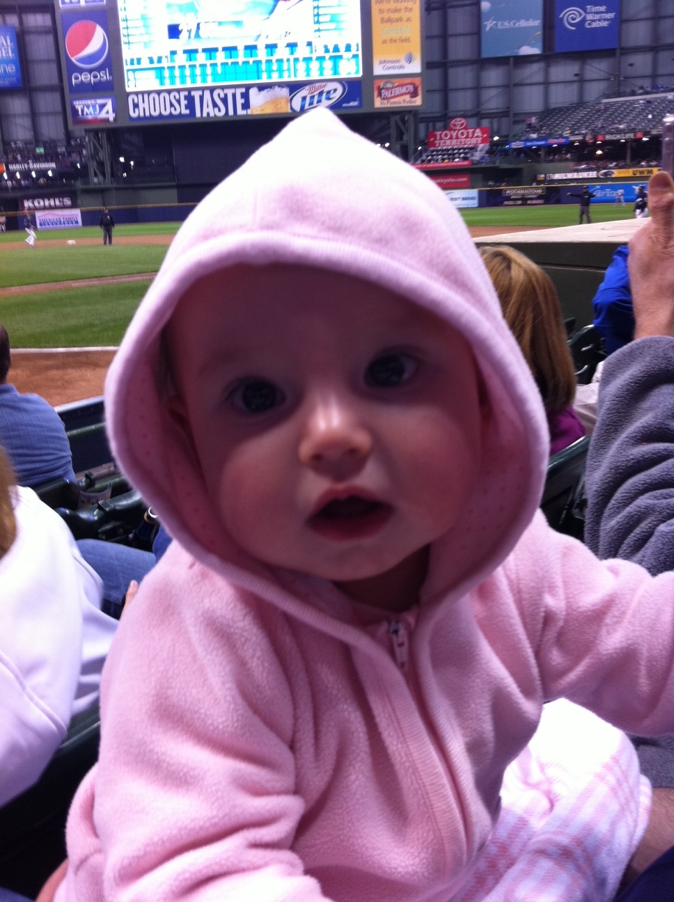 Sunday my dad came to town for the afternoon, and despite the cold, rainy day, we had a really nice visit. Plus he brought some of my favorite sandwiches up from Peoria, always a bonus. 😉 Yesterday was fantastic. We woke up to blue skies and what turned out to be some blazing sun, so we took advantage. We walked over to a park a few blocks from our house for a round of frisbee golf, which D enjoyed immensely by taking a nap. It’s quite obvious I haven’t played in a couple years, judging by the number of discs for which I had to go foraging in the woods surrounding the course. R trounced me, as usual, but that’s ok – it was fun to be out on a course again and enjoying some finally nice weather. (i usually don’t even keep score during frisbee golf. my lack of aim and arm strength make for a discouraging combo when i do) Afterwards D and I headed out to some friends’ house to see their 2 week old baby boy, K, and he is just about the cutest, tiniest peanut ever. He snoozed the whole time we were there, and he looked so little and scrumptious in his swing. Congrats again, Ds! When we got home R fired up the grill for some outstanding brats, we sat in the driveway and listened to the Brewers on the radio, then enjoyed a fire in the fire pit until it was time to call it a night.