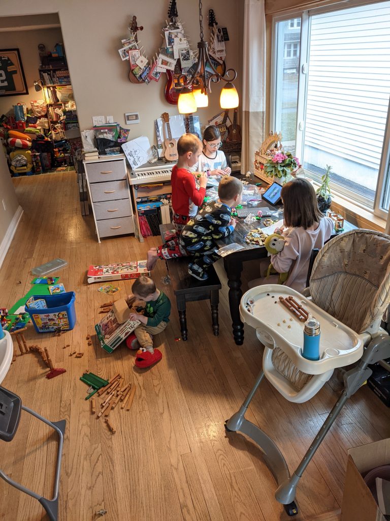 I will say, this winter break has been one of the best times I’ve had with our kids. This Christmas was exceptionally fun and magical, and I’ve just had an incredible level of happiness the whole time. We tracked Santa and loved all the preparations for him and the reindeer, we’ve played lots of games, had a couple movie nights, gone ice skating for the first time for the kids, walked to the beach to hunt for sea glass, and just hung out all together. The twins get a little bit easier daily, and watching all 5 of them play together and interact more as people instead of kids and babies is amazing. We got very lucky with this bunch, that’s for sure.