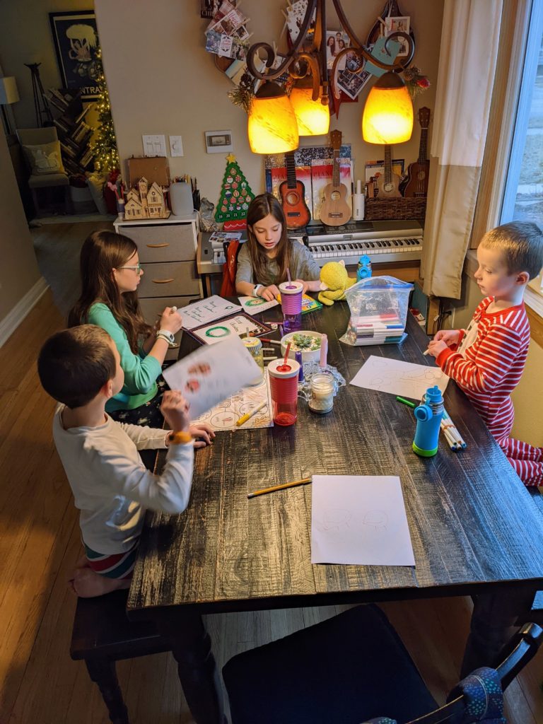 I will say, this winter break has been one of the best times I’ve had with our kids. This Christmas was exceptionally fun and magical, and I’ve just had an incredible level of happiness the whole time. We tracked Santa and loved all the preparations for him and the reindeer, we’ve played lots of games, had a couple movie nights, gone ice skating for the first time for the kids, walked to the beach to hunt for sea glass, and just hung out all together. The twins get a little bit easier daily, and watching all 5 of them play together and interact more as people instead of kids and babies is amazing. We got very lucky with this bunch, that’s for sure.