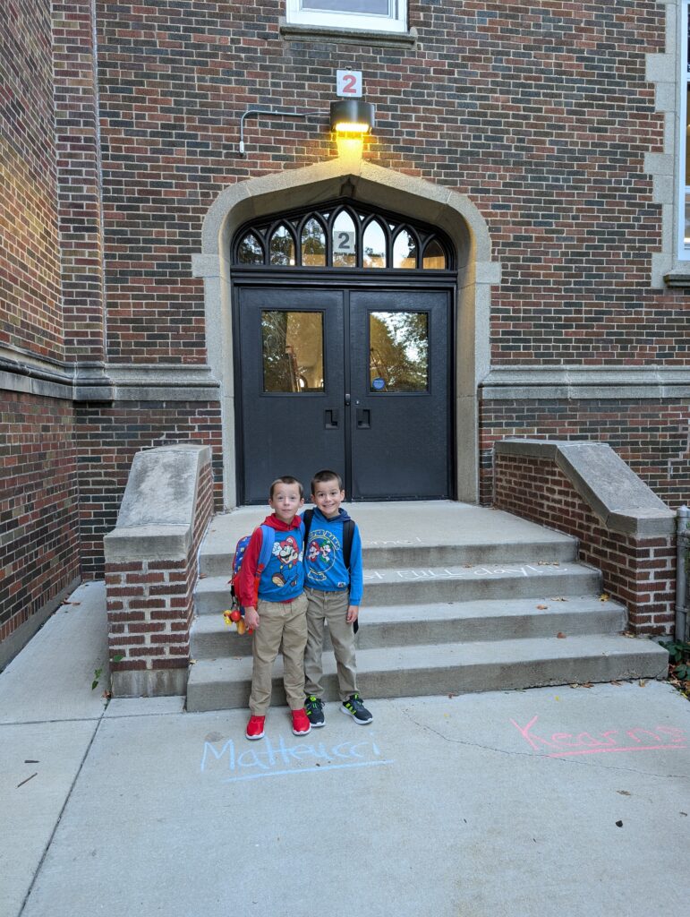 I still can’t believe the twins are in K4, going through those doors every day, just like their siblings. It definitely feels like the time is right, but it gets me daily seeing them run up the sidewalk to their door each morning with their little backpacks bouncing, then bounding out to me again after their morning session is done, just like the big kids always did.