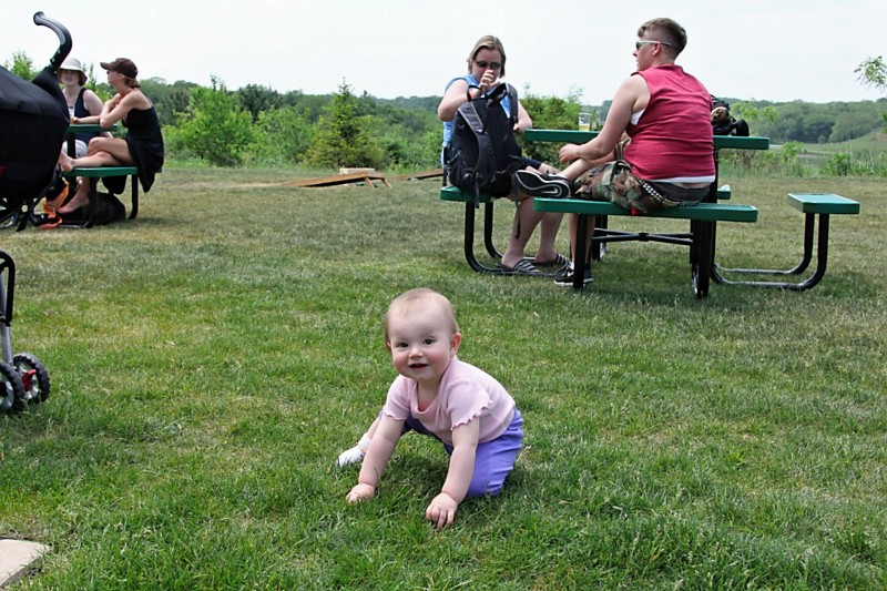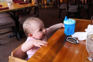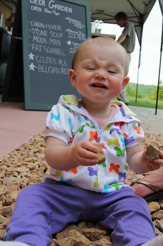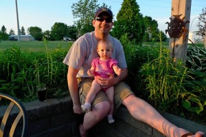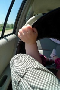 All I wanted to do was sit and relax in the sun for half an hour when I got home, while it was still shining on the back part of our driveway. I’m feeling seriously vitamin D deficient after this miserable “Spring”, and I was exhausted. Well I had to take D out there with me because R was working on something, so I grabbed one of her books, her water cup, and a little container full of Cheerios, and I strapped her into her stroller so she couldn’t boogie away from me. This worked well on Monday – she played in there for quite a while as we grilled and ate dinner outside – so I figured it’d be a fine alternative to hauling her playpen outside again, especially since I was only going to be out there for 30 minutes. Of course not. She played with her stuff for a minute or two, then got totally fidgety and everything started being thrown overboard. After about the fourth time of retrieving and replacing her Cheerio tub I just left it. Whatever got thrown out and onto the driveway stayed there, while she contorted her body into every angle possible trying to launch out of the straps. R came out to take out some garbage and I think could sense my growing frustration, so he took D with him when he went inside. Thank you! Too bad my quiet sun-filled glory that I so desired was short-lived, because after no more than 2 minutes I heard D start screaming. Good lord, now what? She’d apparently fallen into the side of her playpen holding her water bottle and I think scared herself more than anything, but either way my chance to relax outside was now thoroughly shot to hell. And only 20 minutes later, a good portion of which was spent picking up baby paraphernalia. Hmpf.
