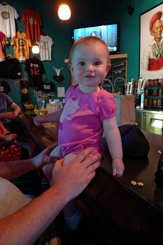 Last night I also wanted to get a load of laundry done and D’s and my clothes packed for a mini-vacation we’re taking this weekend. After the playpen crying, though, she was all upset and cranky, so I decided it was time for some supper for her. And then, oddly enough, she was covered in food and sticky whatever leftover in her hair from daycare, so she needed a bath (no, i don’t bathe her every day. babies aren’t that dirty, but this child was pretty filthy last night). I finally got a chance to get the first load of laundry in the washer after her bath, and I could tell she was getting sleepy and ready for her bedtime bottle at that point – it was 6:45. So I heated up her milk, got situated with her in my arms on the couch, and almost instantly her eyelids became heavy as she drank down the moo juice. Just as she was about to konk out completely, R shouted out from the bathroom to get him a towel since I’d thrown the ones that were in there in the laundry. What?? You’re joking, right? Just step on the mat to dry your feet and walk out to the hall closet to get one yourself (our hall closet is approximately 4 steps from the bathroom door). And of course I didn’t want to shout that I couldn’t come running at that exact second because I didn’t want to disturb D as she was falling into slumberland. So after the third bellow from the bathroom, I tried as hard as I could not to jostle her and carried her into the hallway with her bottle to get a towel to throw into the bathroom. Failure. She was totally awake and then ready to play once she saw Daddy. Back into the living room we went.