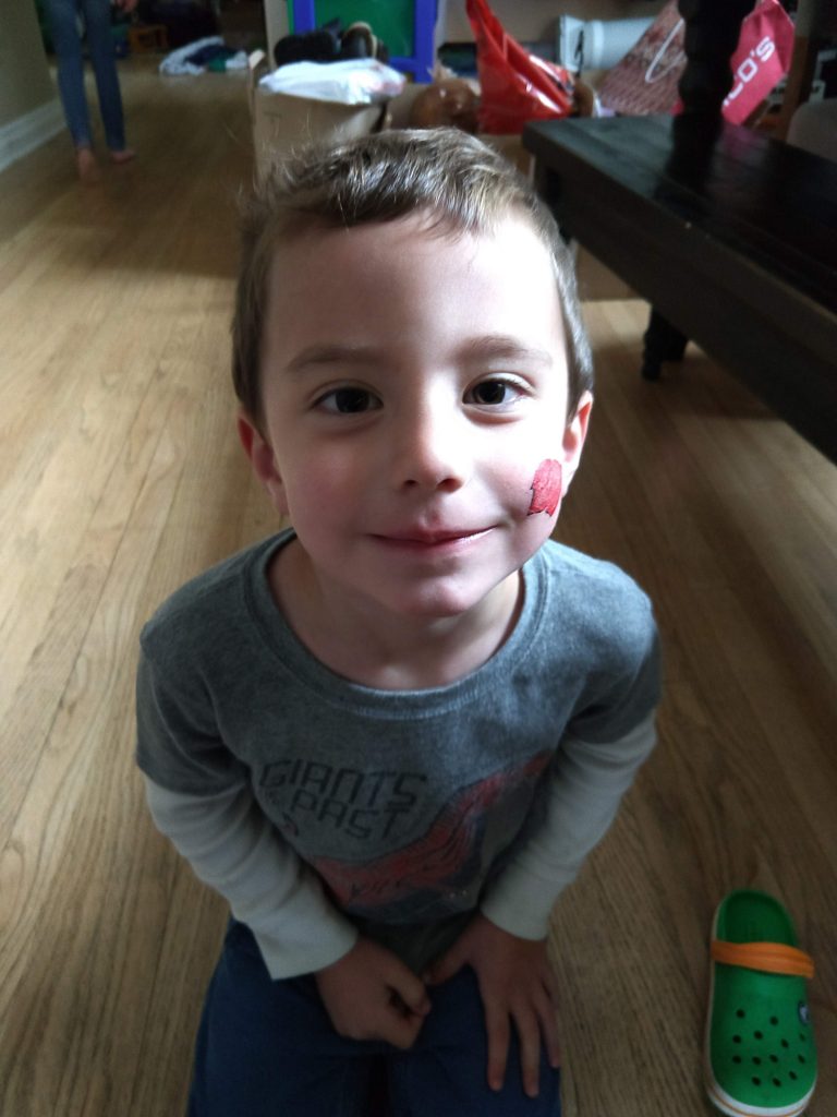 He’s one of the happiest, most cheerful kids I’ve ever known. Sure he has his meltdowns and still cries sometimes when he doesn’t get his way or his sisters aren’t letting him do whatever, but in general, he is incredibly joyful. He comes out of their room every morning with a sleepy, “Good morning, Mama,” and a hug for me. Except that one morning after a night Packers game where my daily greeting was replaced with, “Go Pack Go.” I’ll let that one slide. 😉 But he is constantly giggling, laughing, bouncing and skipping around, and his little smile is ridiculously infectious.