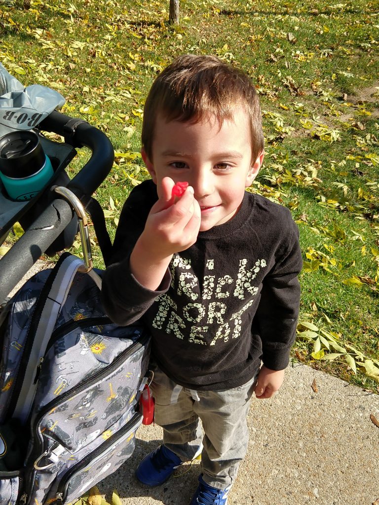 He loves school with his entire being. He had no hiccups starting this year whatsoever, and I think it’s because he was already so familiar with the place, having been going there literally his whole life. Now it was finally his turn to get to go in with his sisters, and he couldn’t wait. He comes bounding out the doors every day with an excitement that hasn’t wavered since the very first day in September. I get the best running hug you can even imagine.