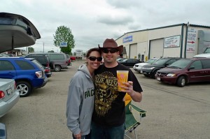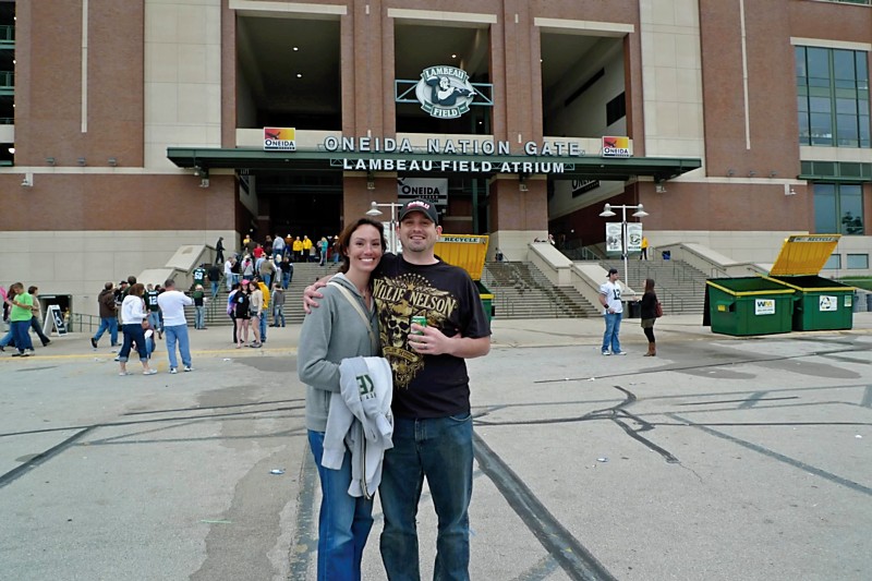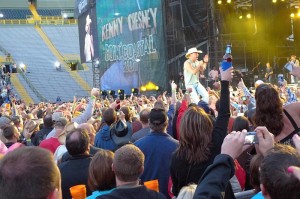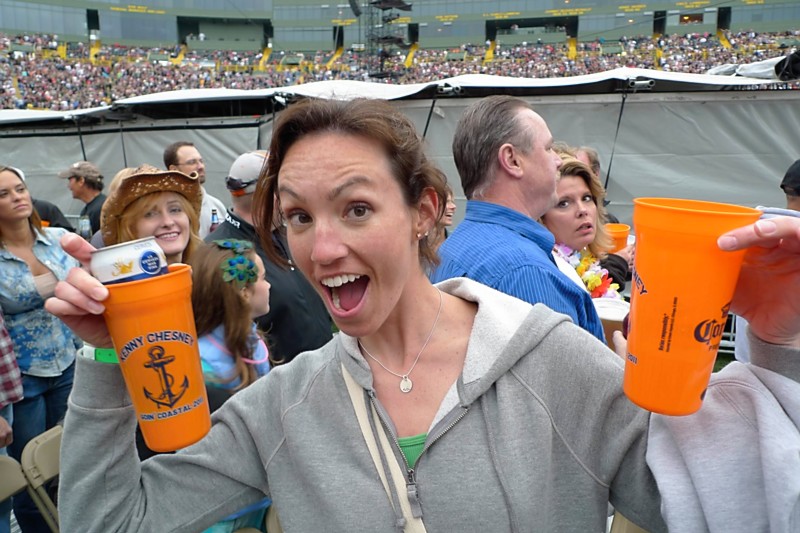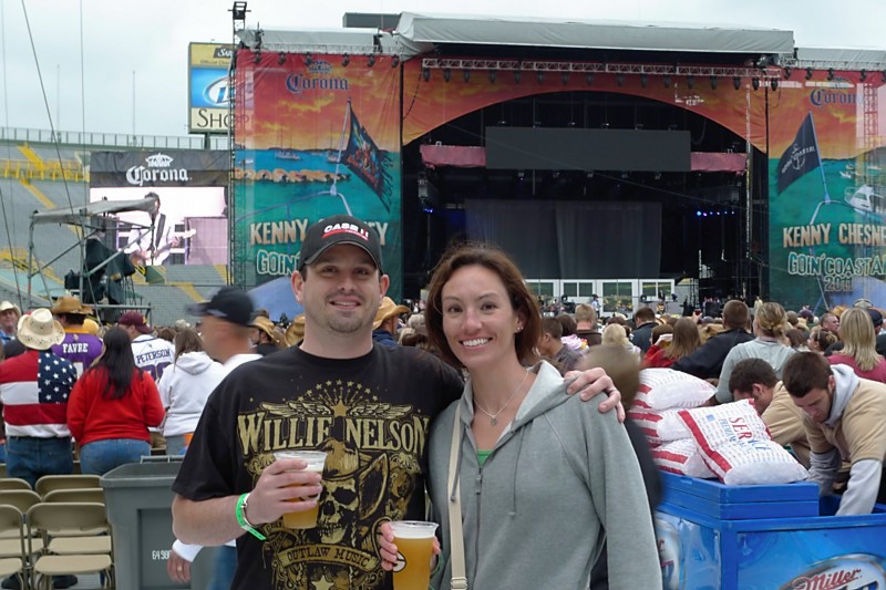Saturday night was the Kenny Chesney concert up at Lambeau Field, and, as expected, it was awesome! We dropped D off at one of R’s cousin’s house in Sheboygan on the way and arrived at our tailgating destination around 1pm. The weather left much to be desired, unfortunately, with clouds and a chilly breeze. At least we didn’t get rained on, though, and R let me wear his sweatshirt before we went in as a second layer to keep warm.