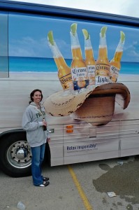 Giant "Goin' Coastal Tour" bus outside Lambeau