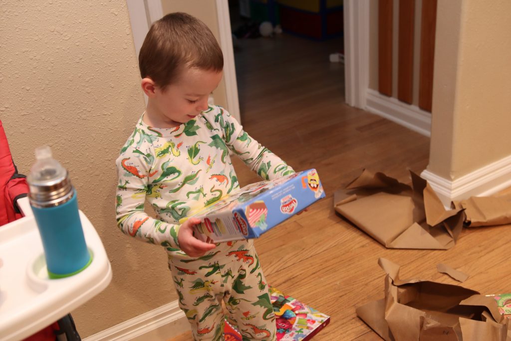 They absolutely love Daniel Tiger, Peppa Pig, and Forky from Toy Story 4. They like to color as much as their big siblings do, and they constantly dive into their bag of Color Wonder markers and paper and start creating. They got a little remote control car for their birthday that they are surprisingly good at driving around, and they adore all their little choo-choo books. Cars, trains, balls, and blocks are their usual toys of choice, and they are very good at playing by themselves. Playing peek-a-boo is one of their favorites, they have learned to start telling knock-knock jokes, and their snuggle blankets and plugs are still their lifelines.