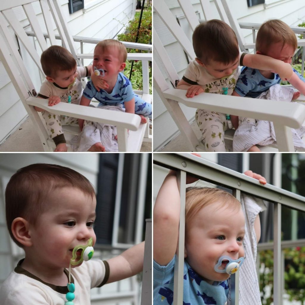 So where to even begin with these two right now… I alternate between marveling (still) at the fact that we have twins and how I could not love 2 little simultaneous boys any more, and the utterly soul-crushing frustration that comes with trying to control, corral, teach, and raise 2 little simultaneous boys. Plus their 3 older siblings. And these swings often happen every 5 minutes, all day long. No wonder I always look like the walking dead!