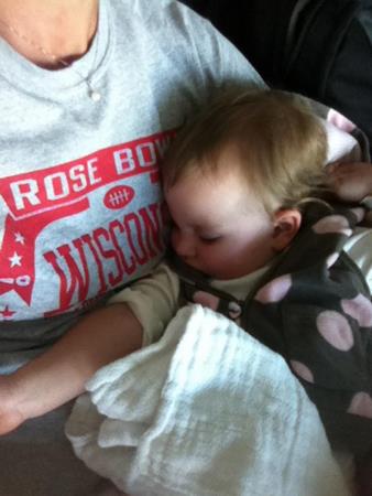 The drive back went smoothly and safely, and we got home shortly before 8. It was a long day, and D was already in bed by the time we got home, but she had a lot of fun playing with Grandma. And Daddy had a lot of fun playing with the Packers fans. See…