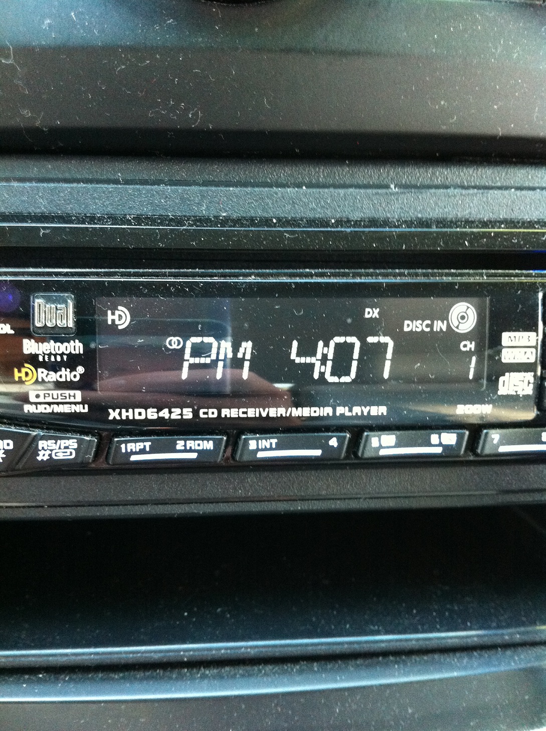 I forgot to take a shot of the clock when I left my desk, so the car radio will have to suffice. And please excuse the less-than-professional quality of my pictures tonight – they were all taken on my iPhone.