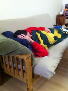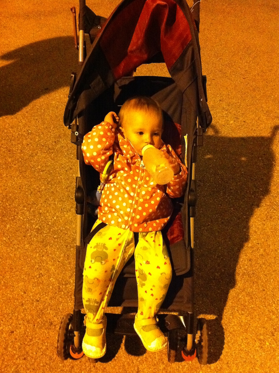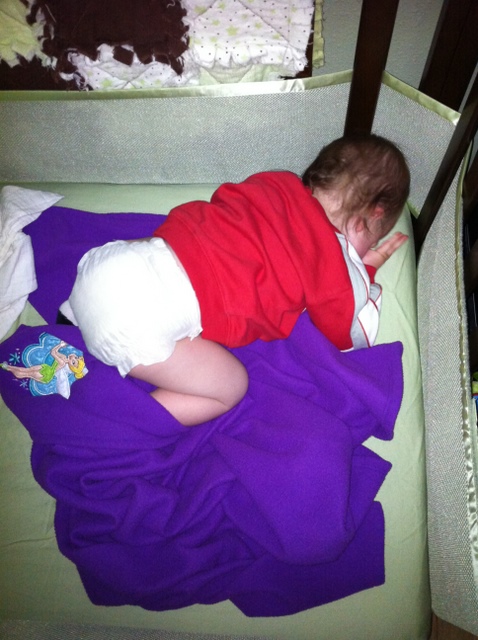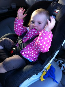 She did do another gagging coughing spell on the way home in her sleep and got a little puke on herself, but it turned out to be mainly on the car seat straps and not her, so fortunately we didn’t have to change her into yet another set of pjs once inside a little before 10:30. Gheesh.