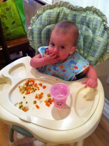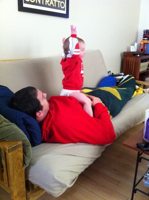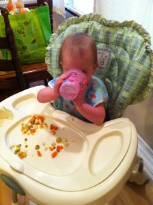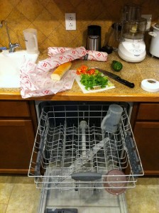 We got home just after 4:30, and I fed her right away while R ran to the store to get fixins for our subs for dinner. While D was eating I also unloaded the dishwasher from the previous night’s load. Multi-tasking. Key.