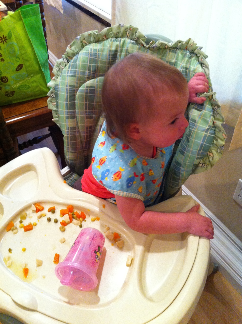 She loved drinking her water out of a different cup with dinner, then happily watched Daddy make sandwiches.
