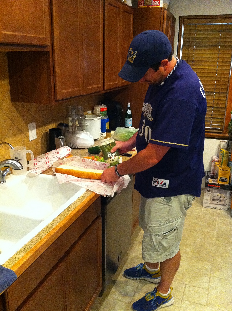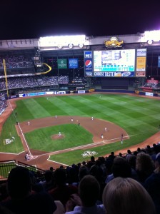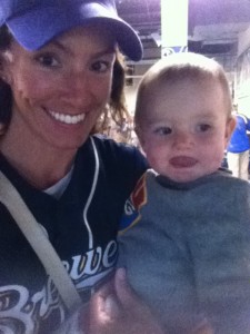 While sitting up there, also, I was reminded of our wedding while watching the Jumbo-tron. R’s cousin plays for the Brewers and did that year, too, and the day after our wedding they surprised us with a huge congratulatory sign for us and our wedding party up on the big screen during the game. Too bad I was climbing the stairs when they showed it and missed it completely. Ah well, it’s the thought that counts, and that was an incredible gesture.