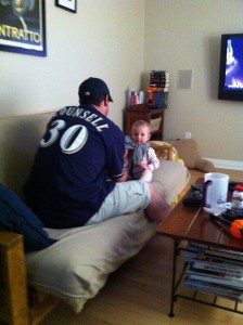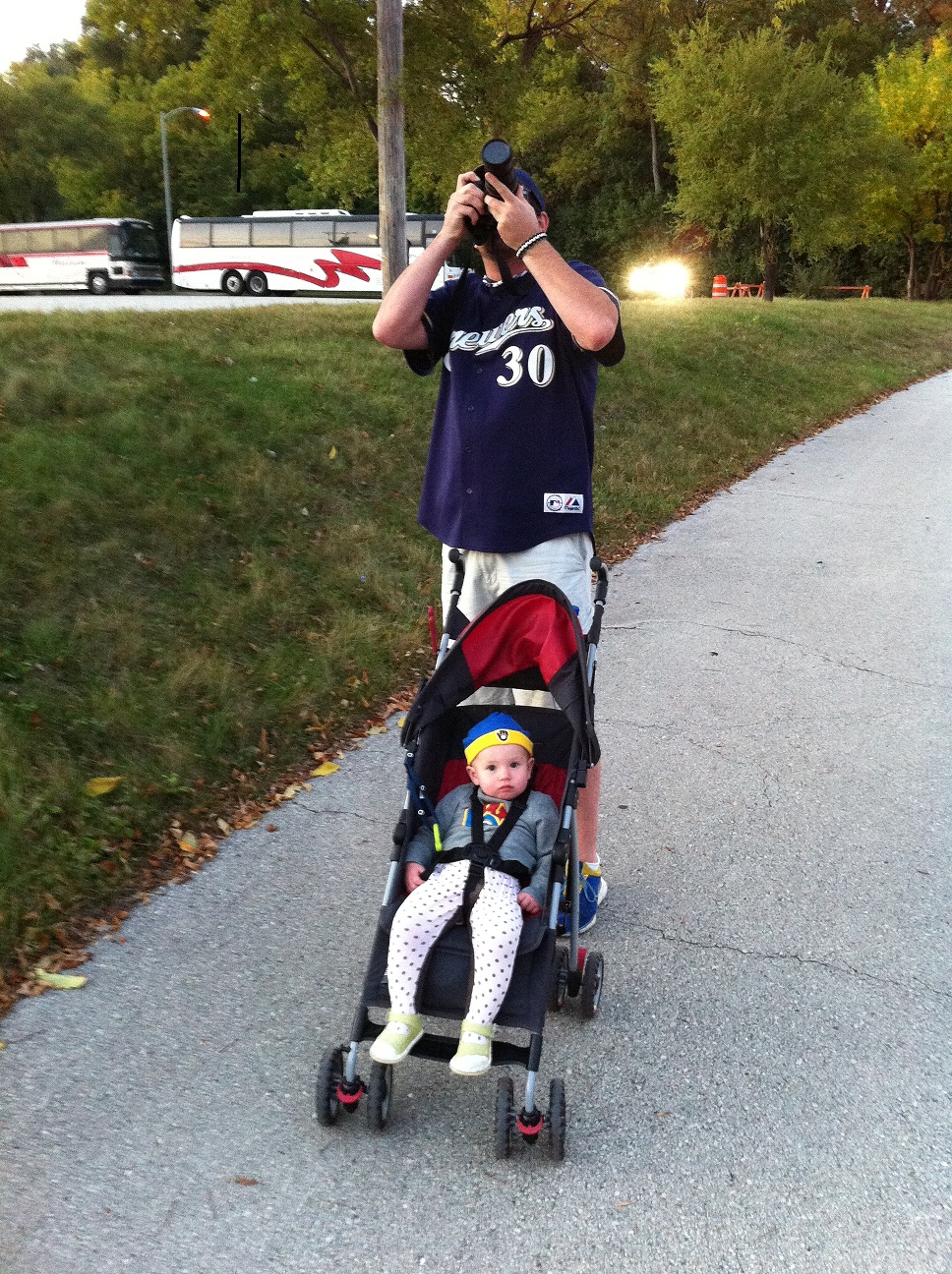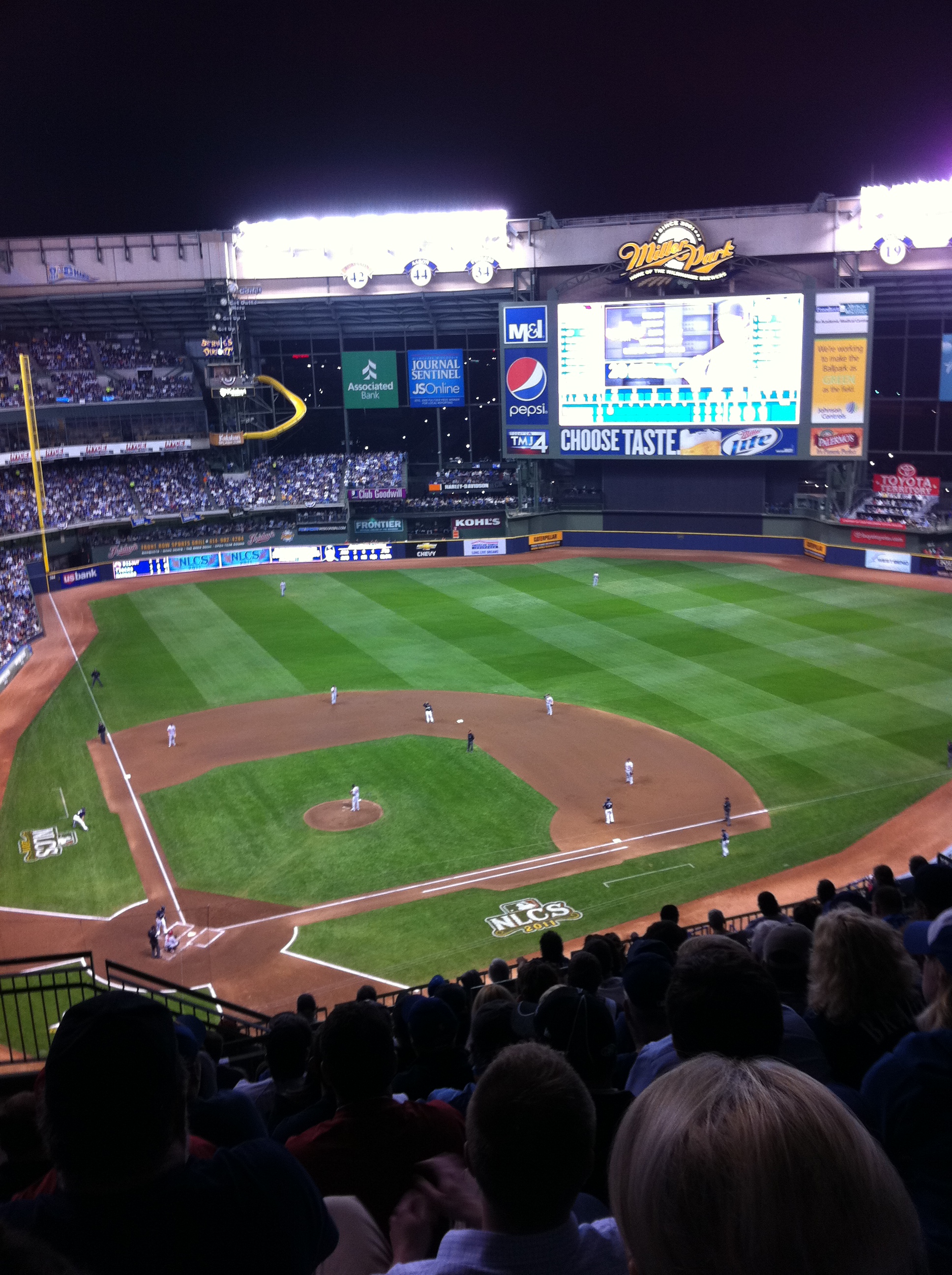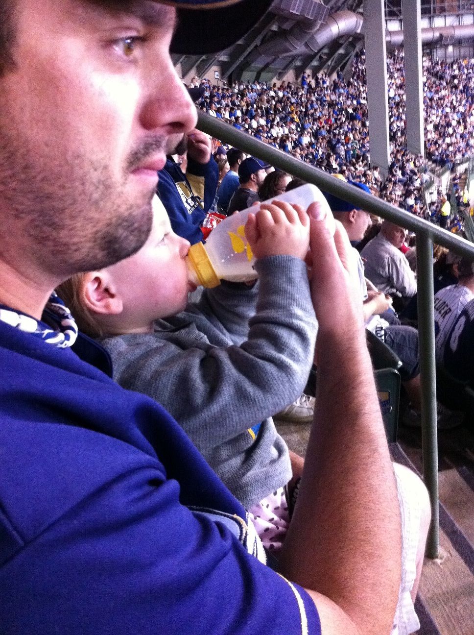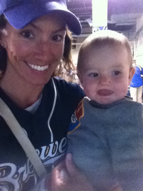 Tonight we were fortunate enough to have tickets to Game 2 of the NLCS at Miller Park, so I left work at 4:00 to go pick up D and head home to get her fed, changed, and have some supper before heading to the stadium. We were so excited to see if the Brewers could pull off another win against the Cardinals to take a 2-0 series lead!