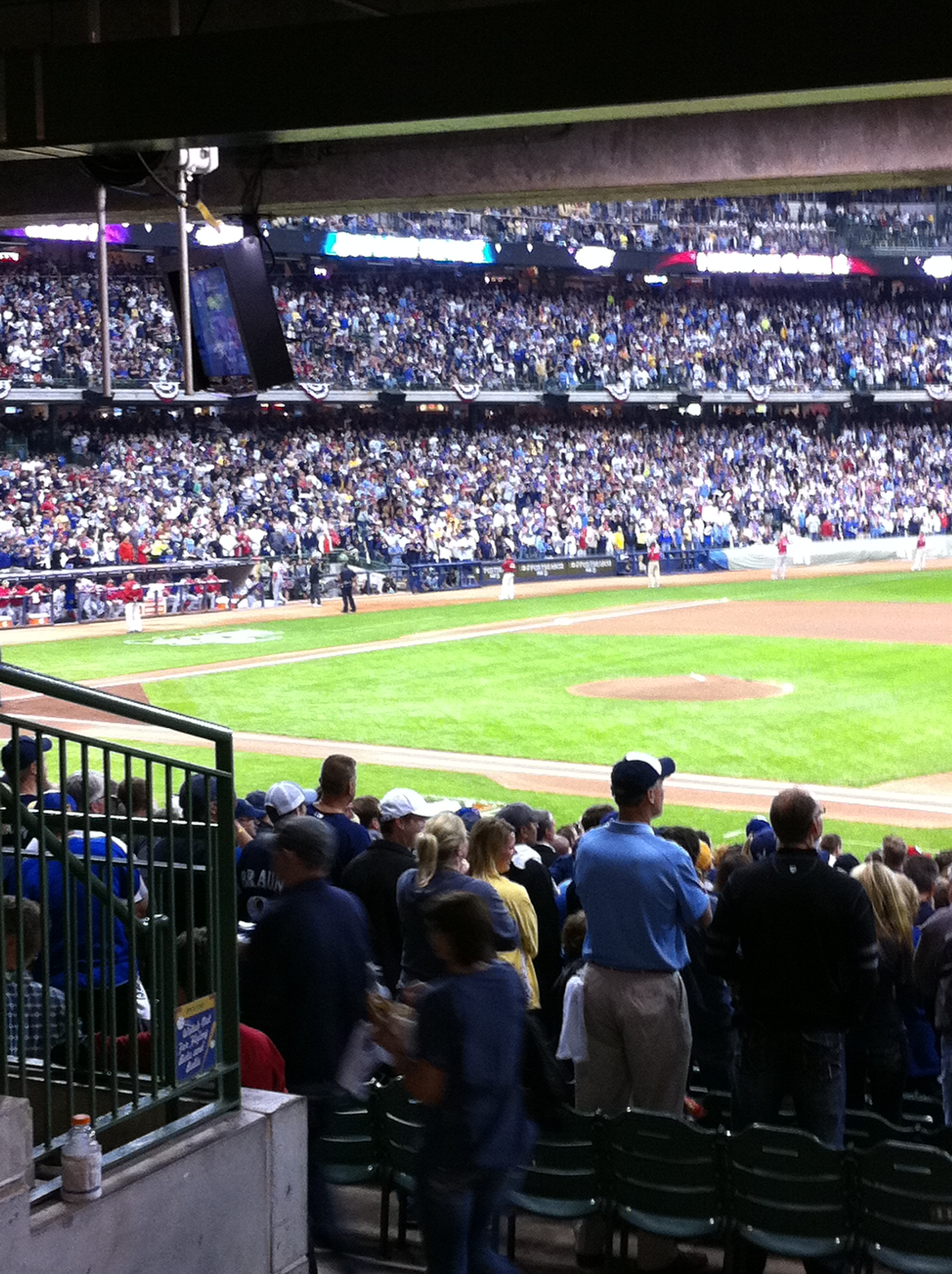 Once inside we took up post in our usual standing room only spot behind section 118 and cheered on the good guys. Go Brewers! Or touchdown! as D likes to call it.