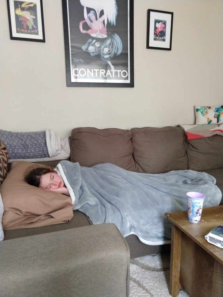 Yesterday was your turn to be home sick, peanut. Boo. You were coughing some Monday night, but it must’ve been worse than I heard or knew. You didn’t even get out of bed yesterday morning, said you were really tired from the night, your throat was sore, and you had a low-grade fever, so I kept you home. You actually said you wanted to stay home, which you never do. You didn’t get up until about 10:30, right before I took the twins to get Morrison from school. I locked you in both times I left for school, because there was no way you could even get up to get in the car; plus that would be so freezing for you. Thankfully the fever never manifested, but you could barely eat, having just a small cup of yogurt and tiny bowl of jambalaya all day. You went back to bed almost immediately after I got home with the boys from K4 pickup, and when Morrison went in to take his nap you moved out to the couch and slept all afternoon. Thankfully Daddy could pick up Lana, so I didn’t have to leave again. But you did miss your first dance class of the session last night, just like the last session! Fortunately you felt fine this morning and went back to school a-ok – yay! It breaks my heart to see any of you guys sick, even though I love having you home all day with me.