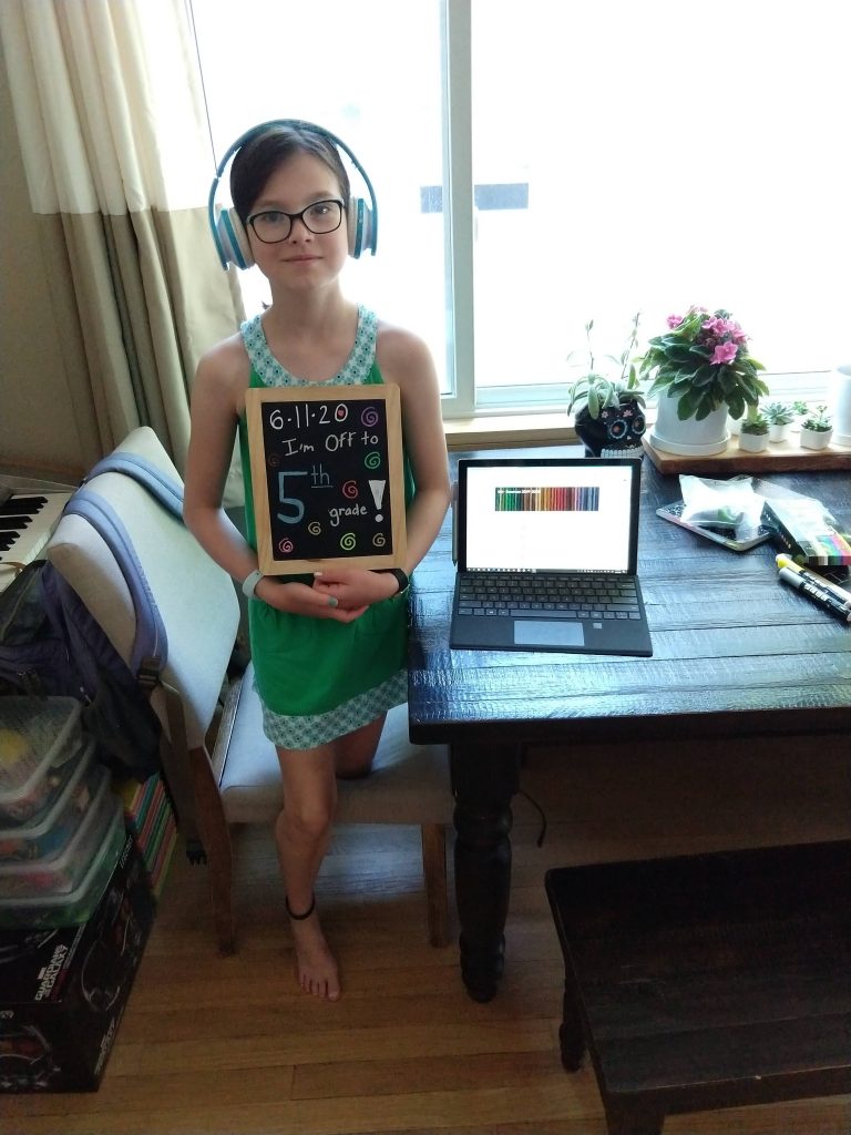 Happy last day of 4th grade, peanut! I can NOT believe you’re going to be a 5th grader next year!! That sounds so incredibly grown up to me. I’m not ready for you to be grown up! 🙁 You had such a great year in 4th grade, even with the last 3 months being at home for virtual learning with the COVID-19 shutdown, and I know how much you’ll miss Mrs. Bowman. I’m sad we didn’t get to do your Madison field trip, which we both were looking forward to so much, but maybe we can do our own Madison day together sometime to make up for it. Hopefully you’ll get to see your friends a couple times over this summer break, too, since you didn’t get to spend time with them for the whole last part of the school year either. I love you so much, my sweet girl, and we are all so very proud of you!