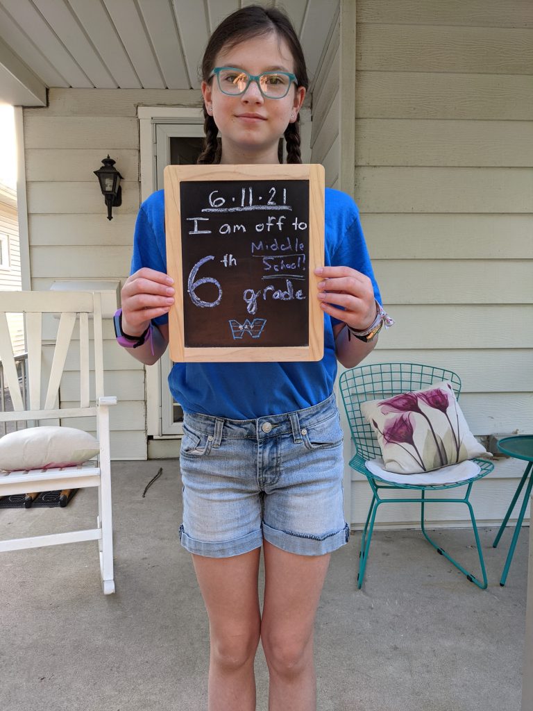 Happy back-to-school day, peanut!! You, Lana, and Morrison are back at Cumberland in the classroom for the first time all year, and you guys could not have been more excited. You probably the most! Especially since you get to stay with Mrs. Topps, YAY!!!! She is an absolutely amazing teacher, and we were both thrilled that she switched back to in person, too, and that you got to remain in her class. We took her some Diet Dr. Pepper today as a welcome-back gift, since it’s her favorite. 🙂 She literally came galloping down your dropoff line this morning when the bell rang, giving everyone gigantic air hugs. It could not have made for a more perfect welcome. We definitely made the right choice in going back for this last quarter. Have so much fun, my love. You are one of the most amazing people I know – kind, incredibly smart, hard working, and conscientious. Mrs. Topps adores you, and so do we. I hope this is the best end to 5th grade that you could ever have. I’m so happy you get to spend this last quarter at Cumberland before going off to middle school next year. I love you so much, peanut – go get ’em!