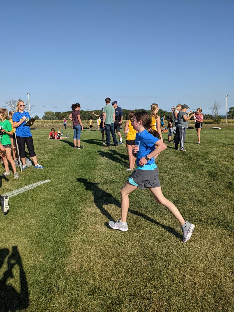 You started cross country today! I’m so proud of you for trying something new, because you’ve never run with an organized group before. You have practice for an hour each day after school, then you just walk home. Your first meet is next week, and I can’t wait to come watch! A bonus – Mr. Hand is officiating your conference meet, because it’s at the middle school where he teaches. A couple of your friends are also on the team, so I hope you have a lot of fun!