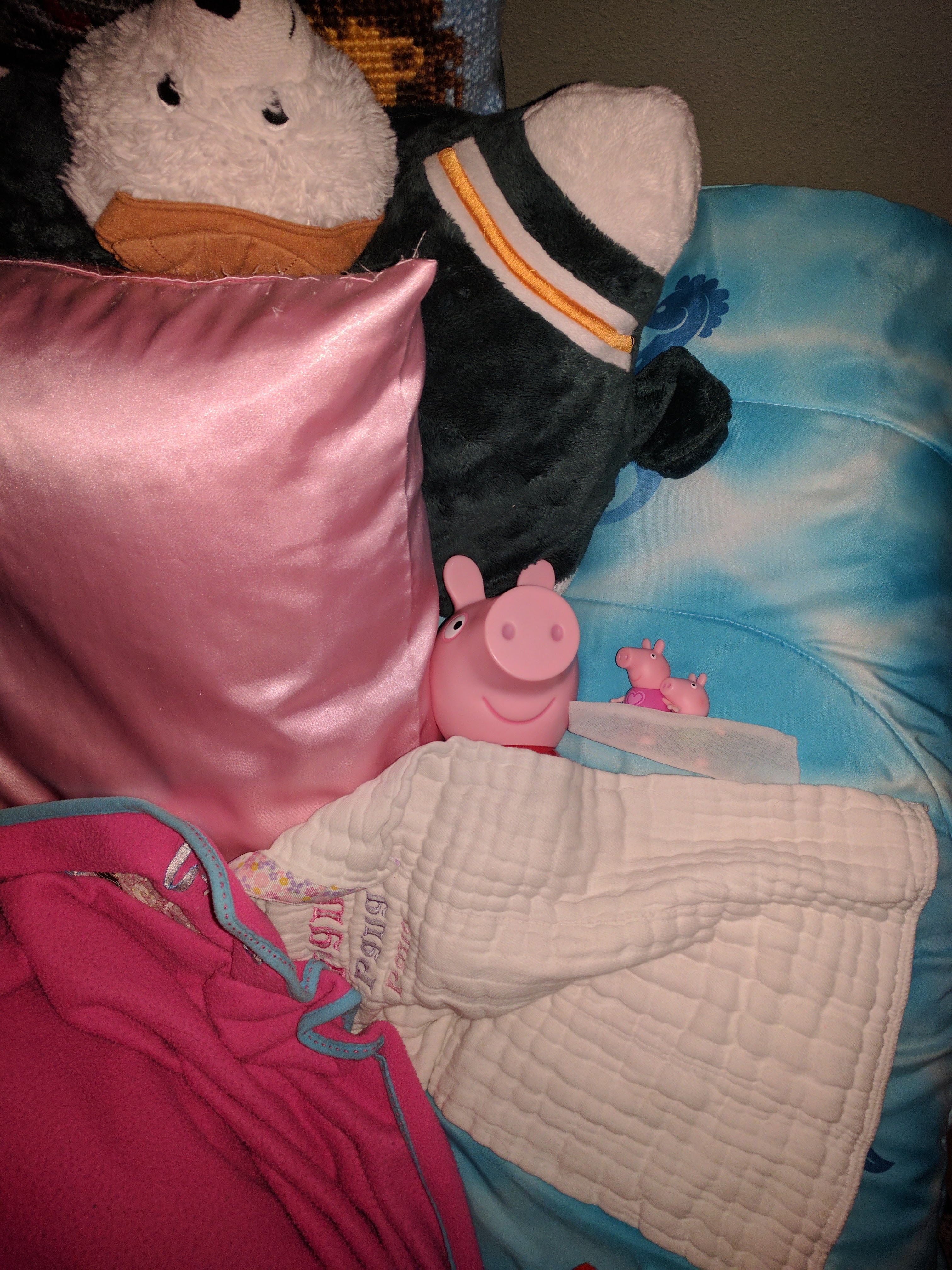 Happy Valentine’s Day, love! I found the cutest sight when I went in to give you my bedtime kiss last night. You had uncovered yourself so I snuggled you back into your Lana blanket, and then I spied your little Peppa Pig friends all tucked in next to you, just like you had been tucked in. You are such a wonderful mama to all your little toys and friends, I just love seeing your thoughts in action.