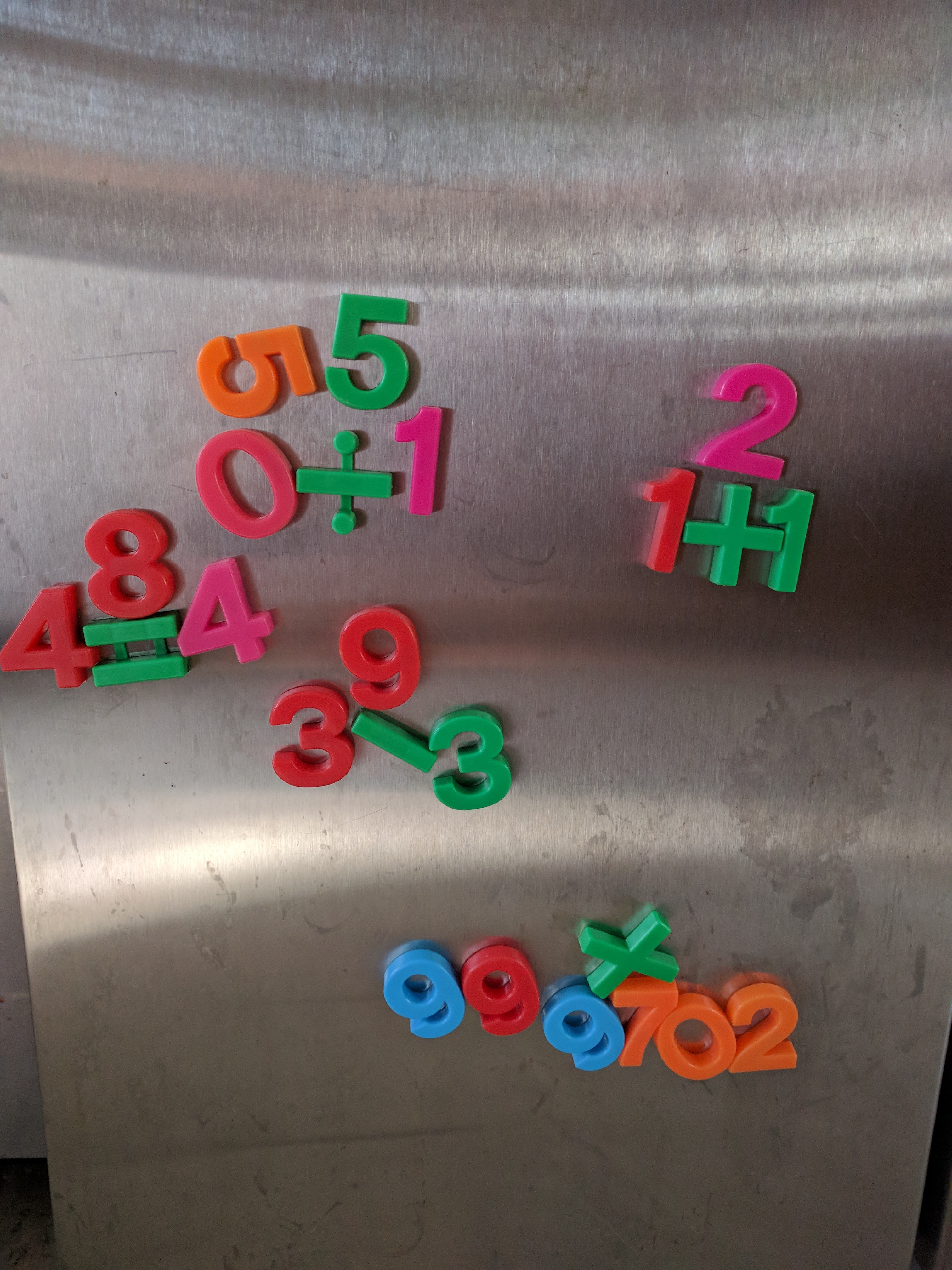 We only have one + magnet, so you improvised with your other equations. And you turned your 6 upside for 3+3, but I was still impressed with your learning!