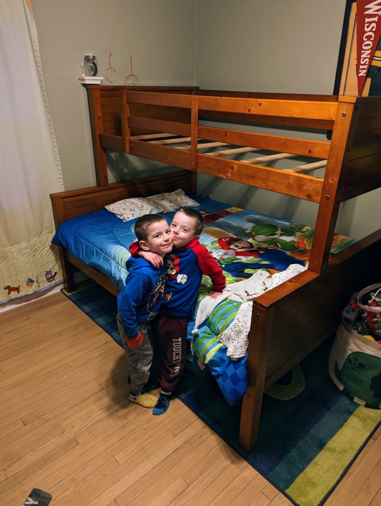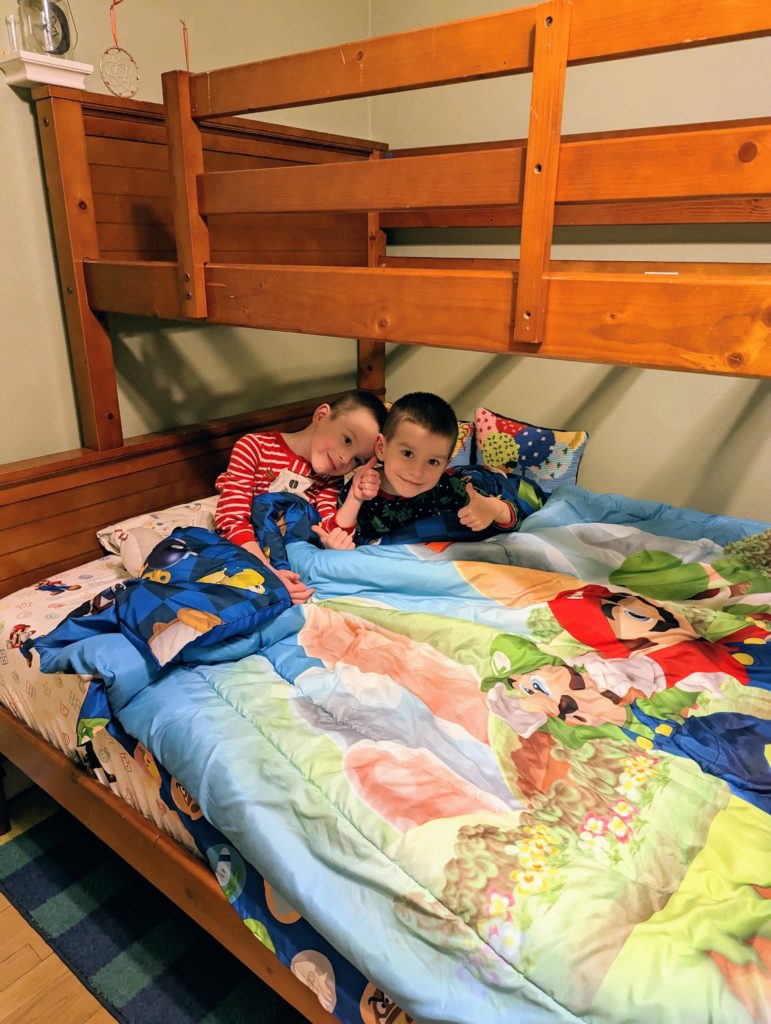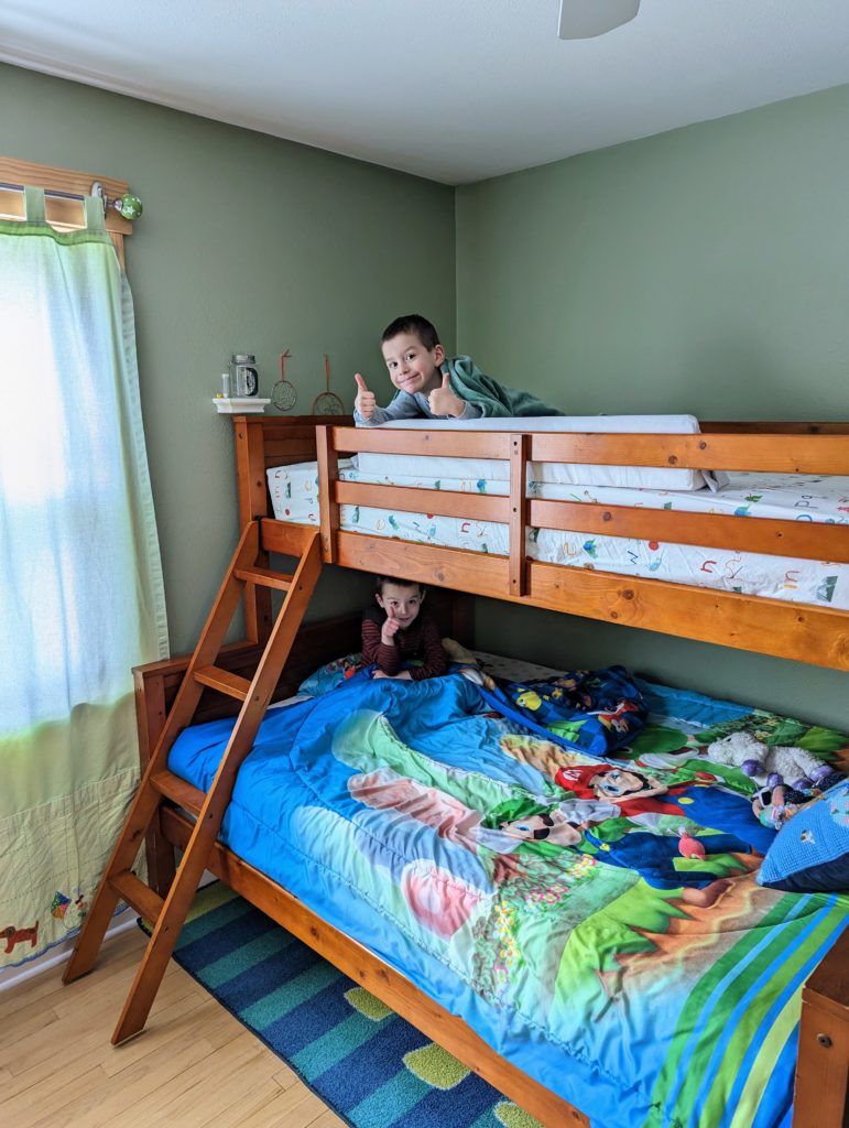 You guys finally got to move into your bunk beds! I took the cribs down and got the new beds all set up over the past couple days, and you guys are so excited. The bottom bed is a full, so you will be sleeping in it together for a little while until I feel like I can trust either of you in a top bunk.