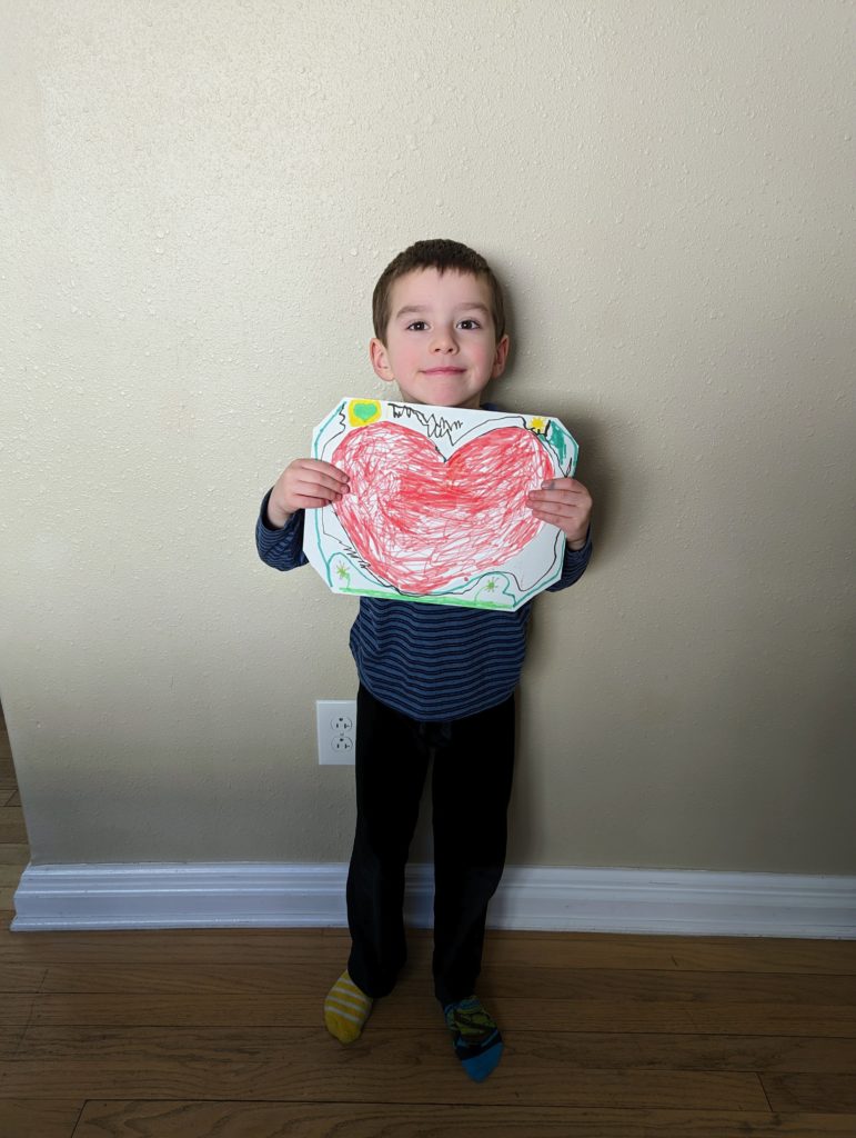 Happy 1st Valentine’s Day party at school, my loves! I’m so happy, because I got to come into your classroom for it. I signed up to run one of the minute-to-win-it games, and my station was stacking red Solo cups and paper plates to make the tallest towers you could. You guys had an absolute BLAST! Everyone was so excited and festive, it was just the best. Avit, you even made a valentine for the entire class. I realized it might be my only chance to see you in your room this year, because they don’t have room center helpers anymore. So I jumped at the chance. I’m so glad I did, because you guys said it was the best day ever having me in your classroom and you wanted me to stay the whole day. I love you guys so much!