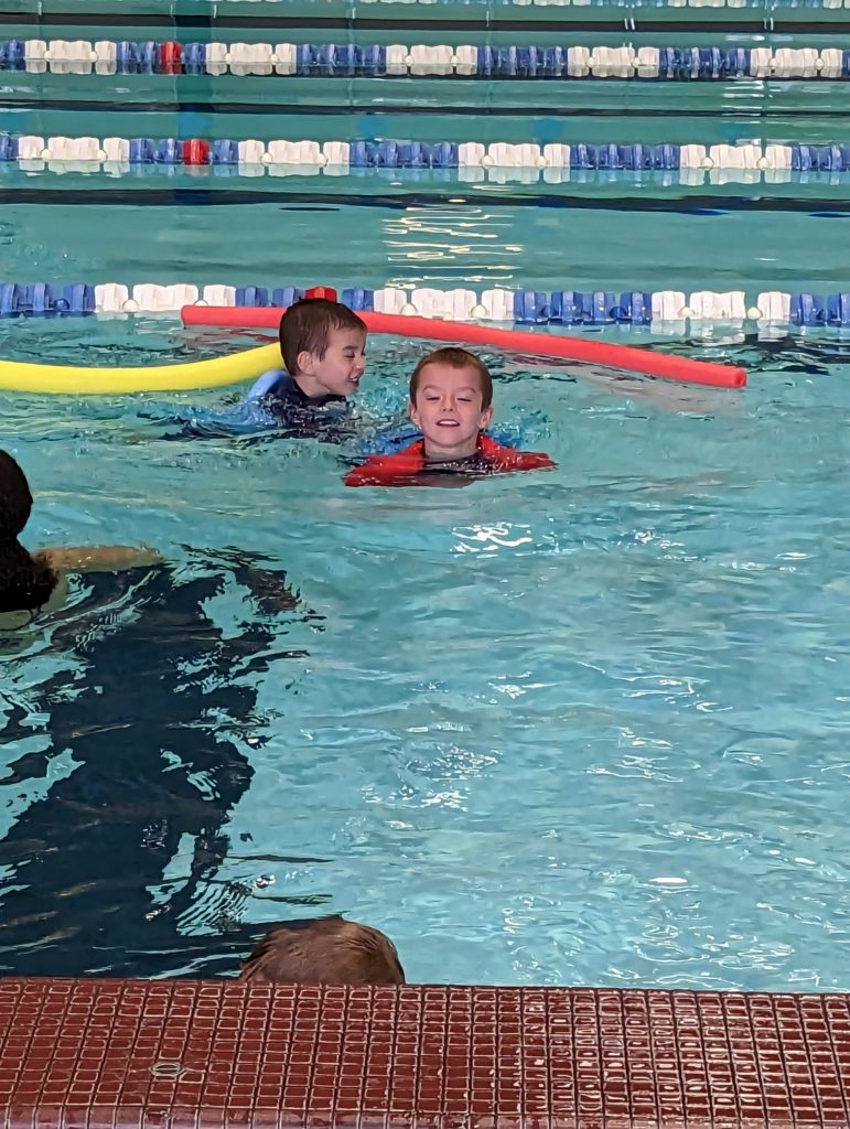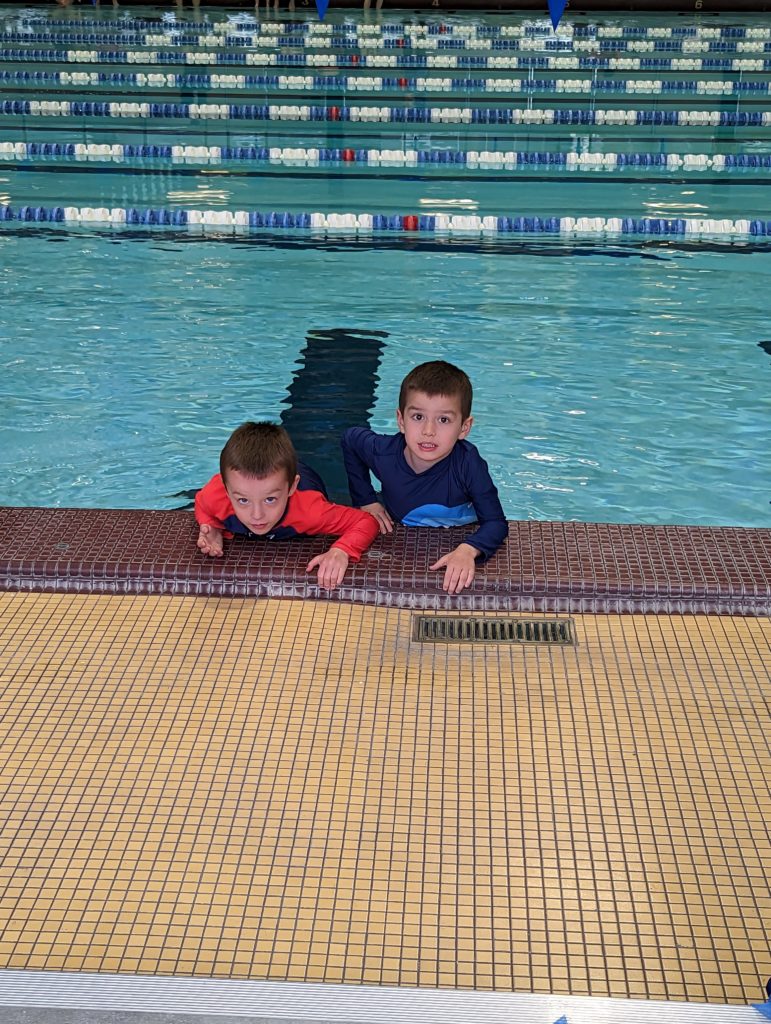 You guys had your very first swim lesson today, and your friend Eli from your class at school is in your class! Nat, you hopped right in, which I took as a great sign since Avit, you were a little hesitant (the water is always cold!), but once you started doing your bobs to get your heads wet and go underwater, Avit, you kept right on going, but Nat, you started crying and got out for the rest of the lesson. You kept saying you wanted to go home, which we obviously weren’t doing, plus all the big kids were with us to watch your guys’ first lesson, so I let you just sit on the bleachers wrapped up in your towel for the rest of the lesson so you could at least see and hear what you would have been doing. The classes always get free time at the end, so I was finally able to talk you into getting back in the water with the floaty life belt on and the red pool noodle. I’ll call that a win! Avit, you did great!