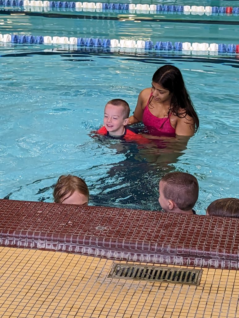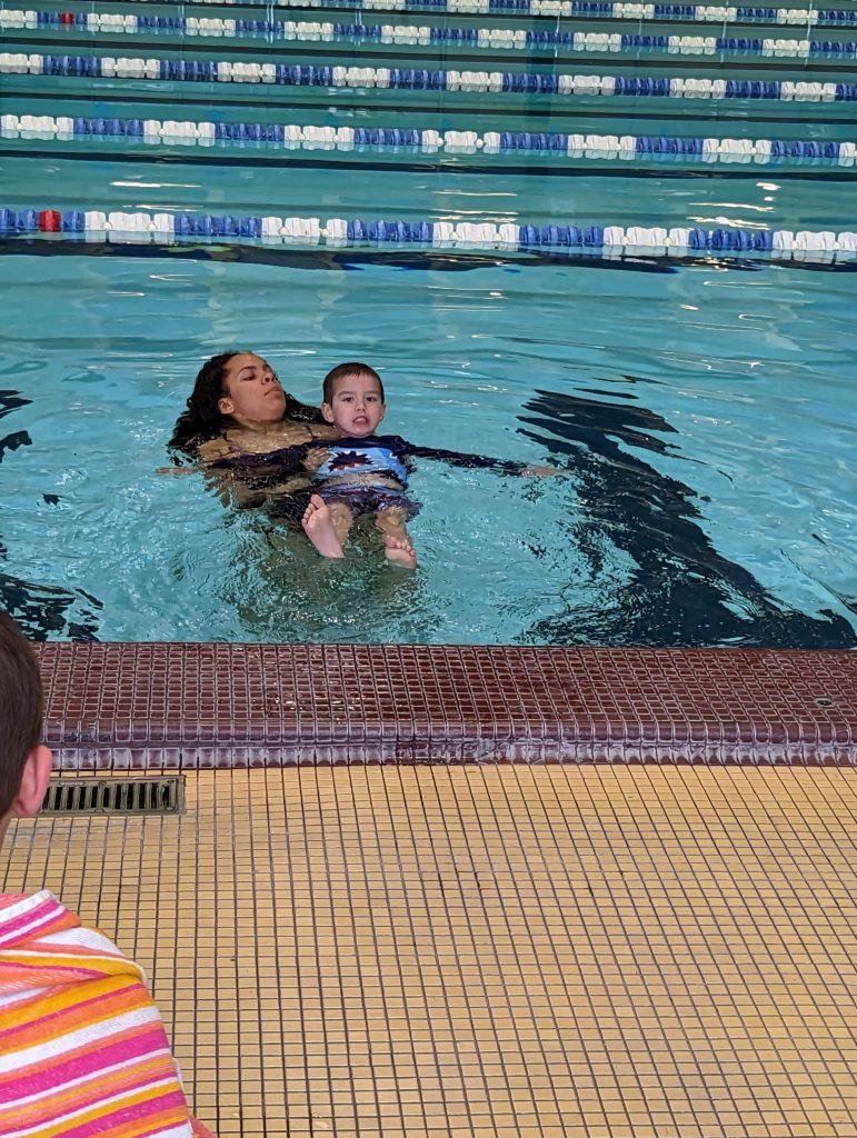 Nat, you stayed in the whole time at swim lessons today and loved it this week. Great job!