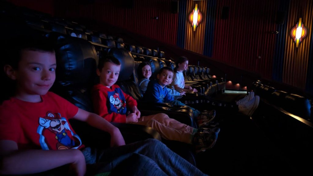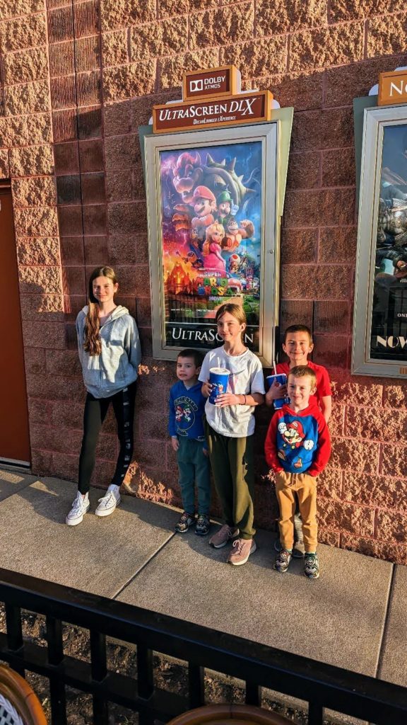 You guys are in heaven!! Daddy took all 5 of you to go see the Super Mario Bros. movie tonight, and I thought your heads would explode you were so excited. It’s your very first movie in the theater, and of course you both wore your Mario/Luigi sweatshirts and shoes. Too cute!