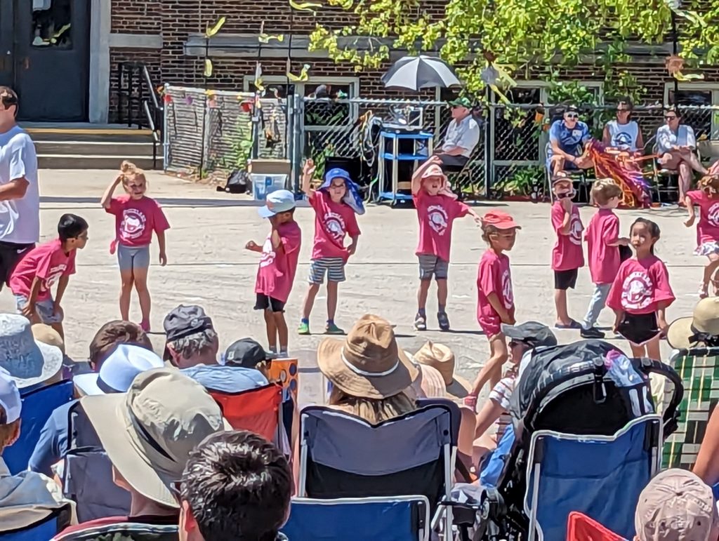 Happy first Spring Sing, my loves! This is such a fun day every year, and you two are so excited for your very first time participating. You’ve been working on your songs all year in music class, and you can’t wait to do your dance to “Who Let the Dogs Out.” I love it!!